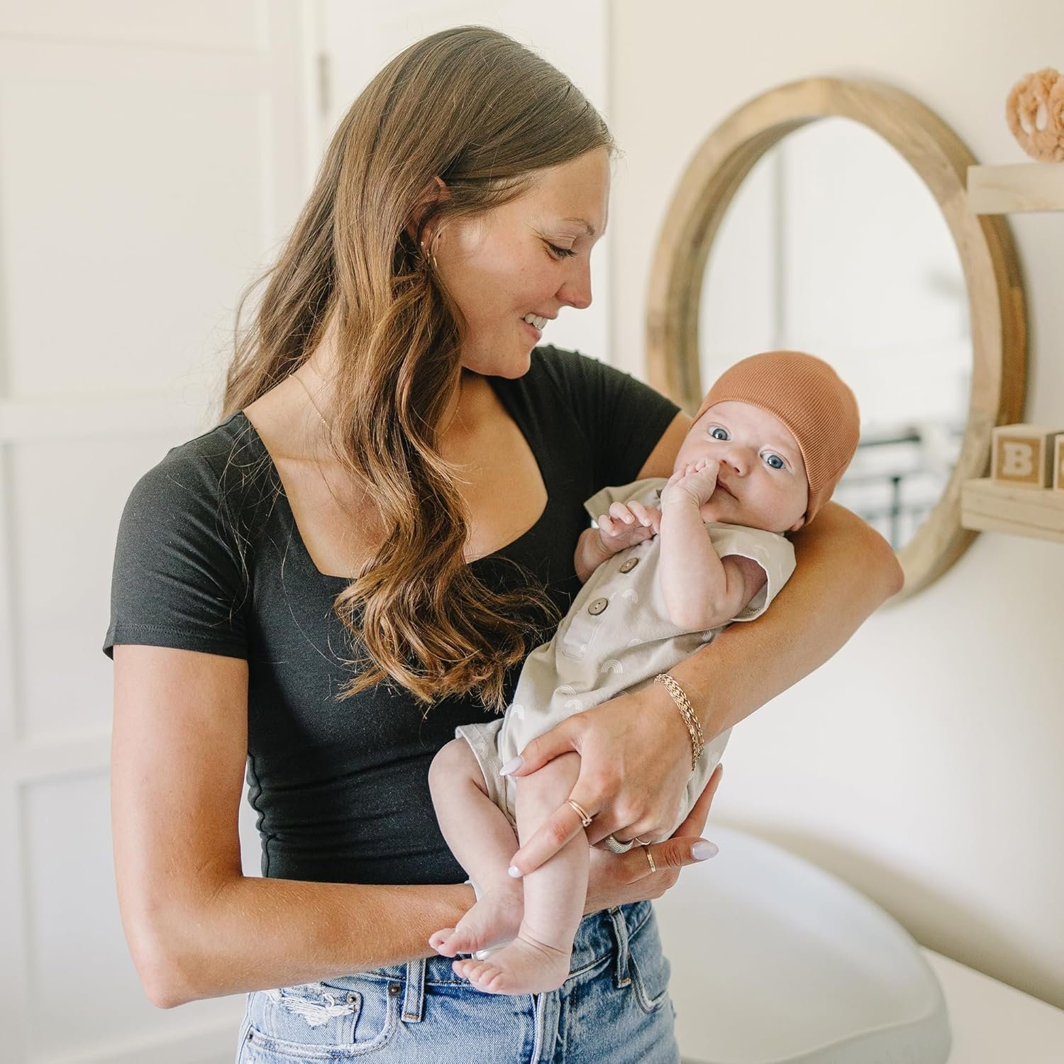 Customers love these beanies for their cute colors that match most clothes and their perfect fit with lots of stretch, particularly for babies with large heads. The hats are soft, stretchable, and made of great material, keeping babies warm during fall and winter. While customers find them easy to put on, some mention they slip off very easily.