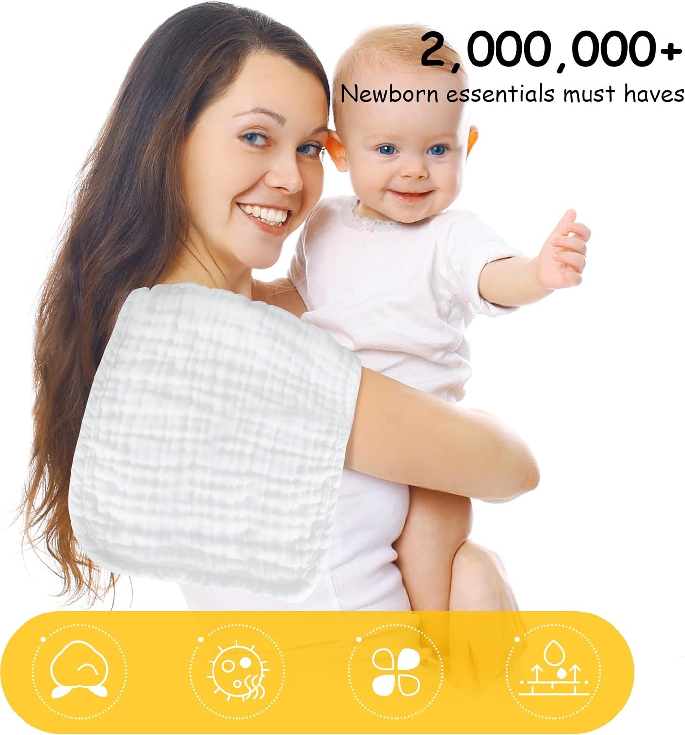 💎ULTRA ABSORBENT- These washcloths are perfect for catching spills and drools, thanks to the ultra-absorbent 100% cotton muslin fabric. It feels just like touching a soft cake, truly a baby essential item.
