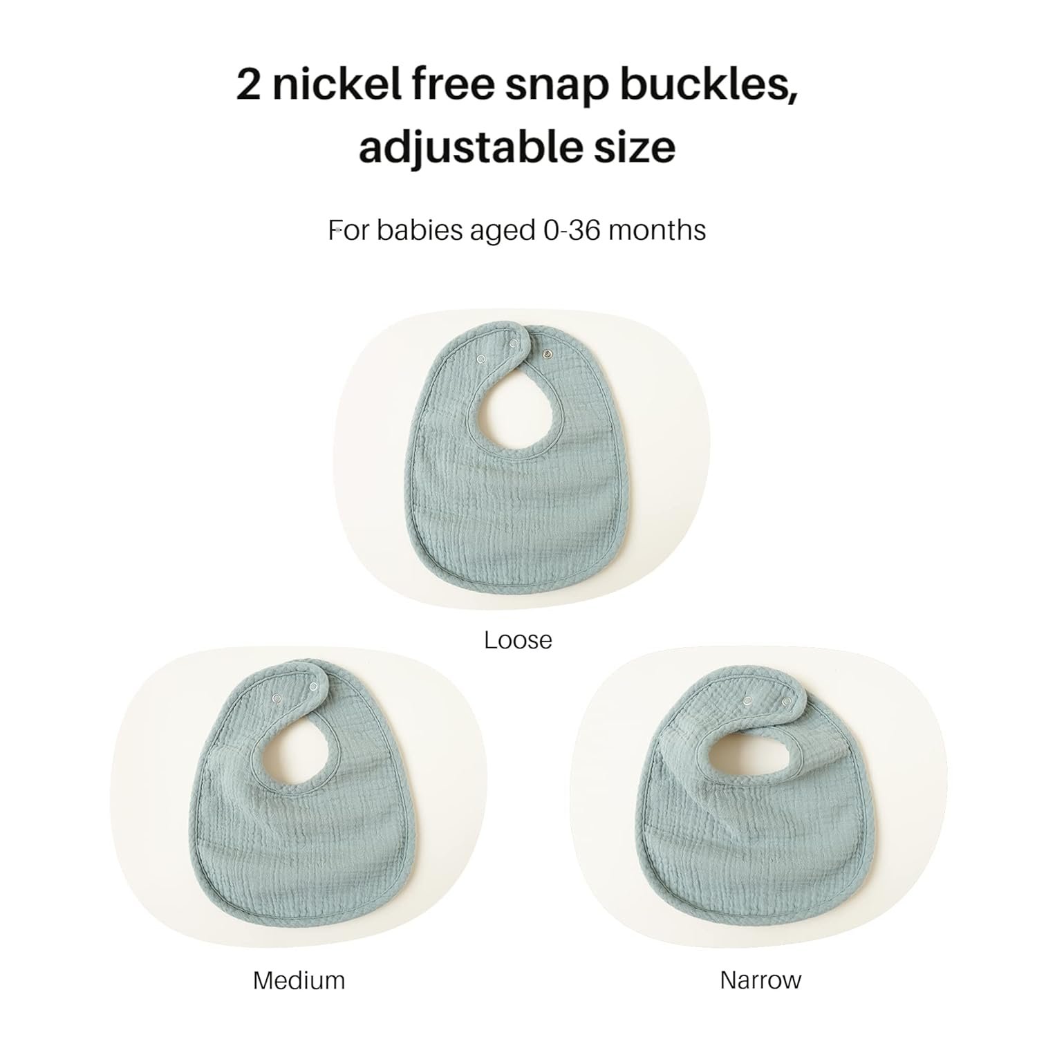 Soft & Absorbent: These baby bibs feature a 100% cotton (muslin) front for a gentle touch and a polyester (comfort fleece) back for excellent absorbency. They quickly soak up drool and spit-ups, keeping you and your baby clean without damp clothing