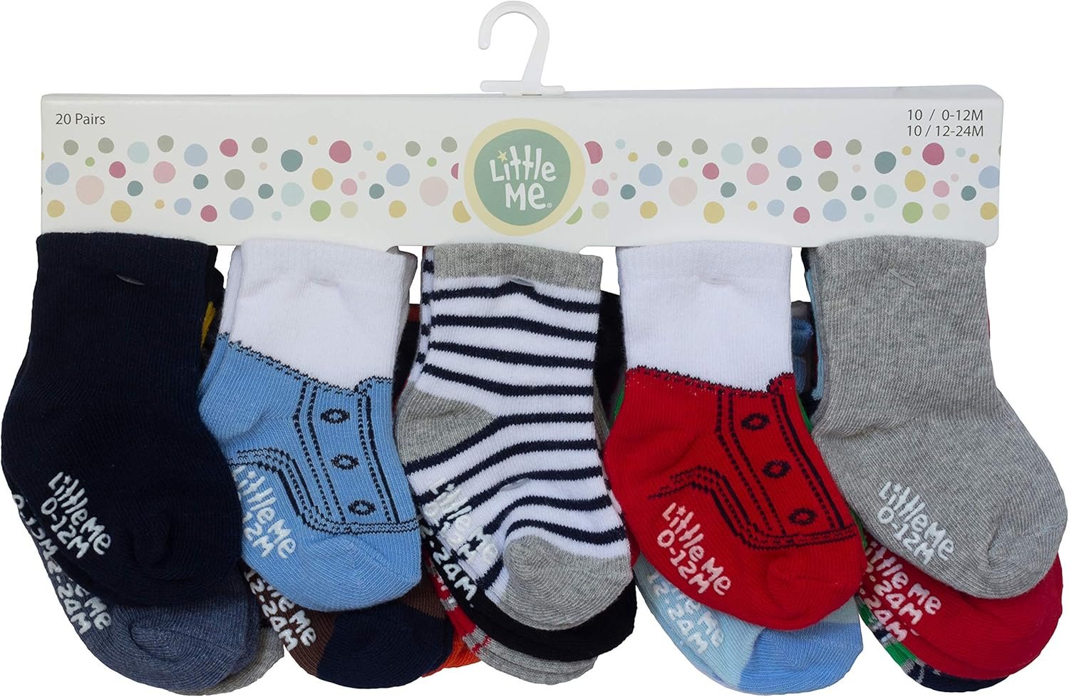 Assorted Size Pack: This 20 pack of soft ankle baby socks includes 10 pairs in size 0–12 months & 10 pairs in size 12–24 months, so your newborn can wear them until they are an infant & toddler. Giving you enough socks to cover your baby’s feet from 0, 3, 6, 9, 12, 18 & 24 months