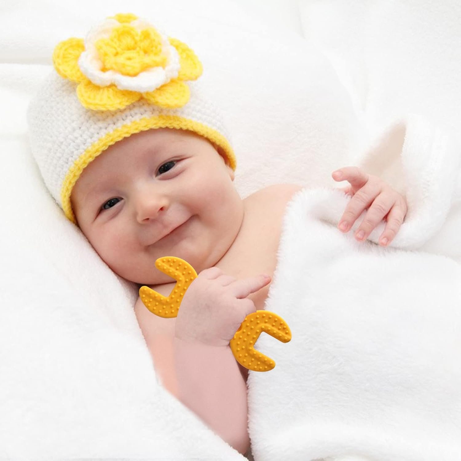 Customers find these teething toys effective, particularly for 5-month-old babies, and appreciate their cute appearance and good texture that’s soft enough to be gentle on gums. The toys are easy to hold, with one customer noting they’re perfect for learning to grip and hold, and come in a size that’s ideal for little hands. Customers praise their durability, ease of cleaning, and consider them a perfect gift for 7-month-olds.