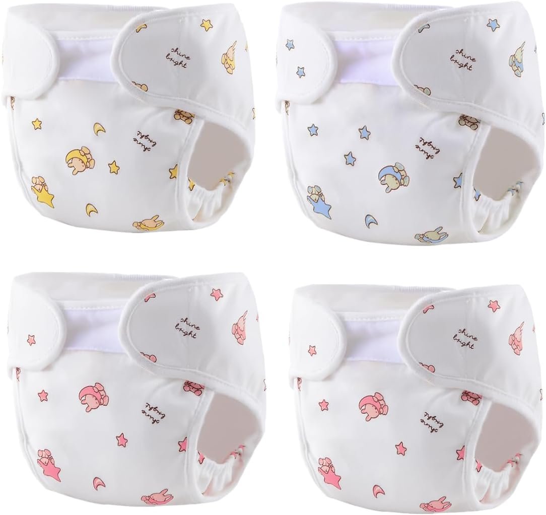 Reusable washable 4-Piece pack Diapers, for lots of diaper changing fun.