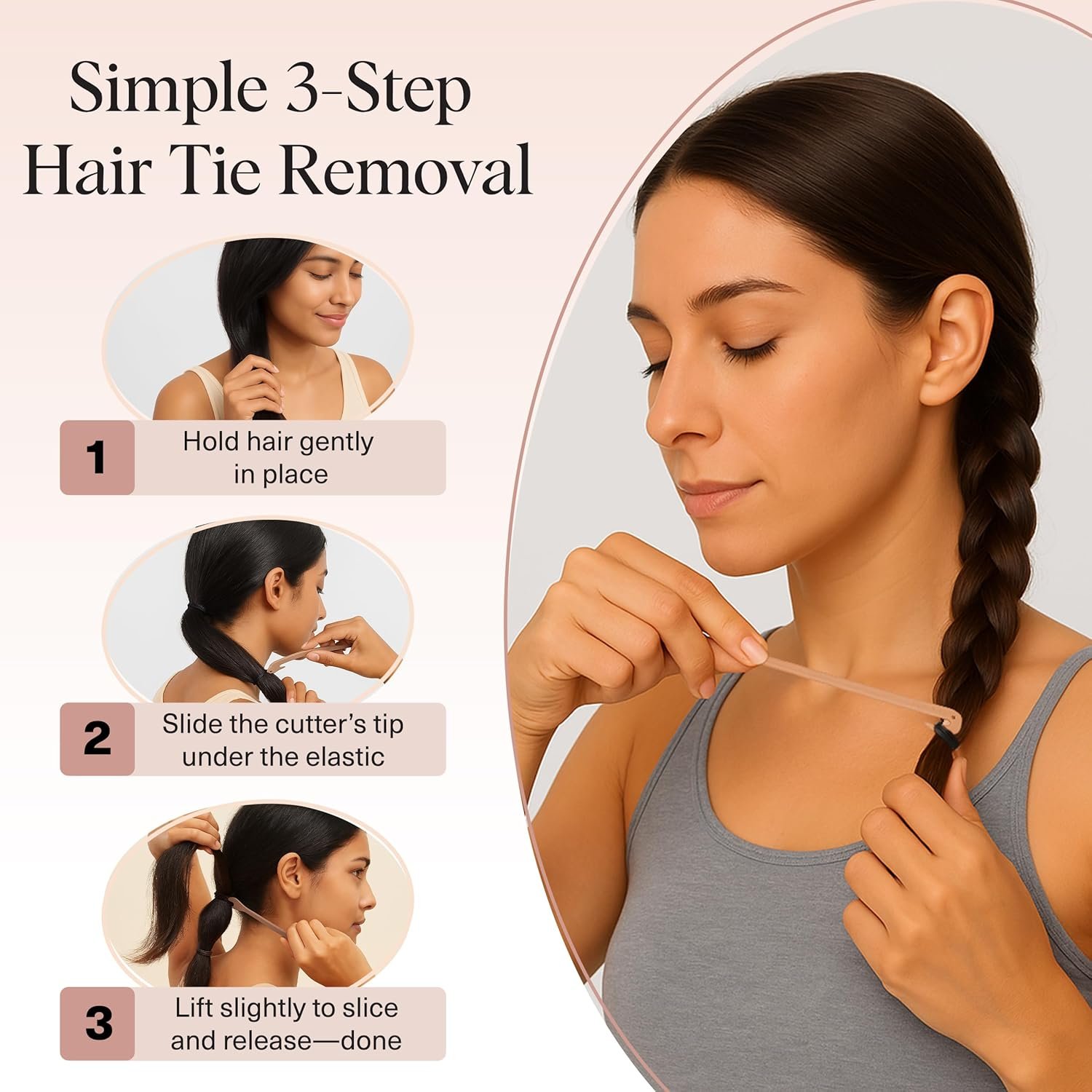 TIDY & READY TO GO: Keep your routine stress-free with this hair band cutter. Whether you’re organizing elastic hair ties or grabbing your go-to hair tie cutter, this compact 3pc set fits right in your drawer, pouch, or hair tie organizer. You’ll always have a hair elastic cutter nearby when you need one most.