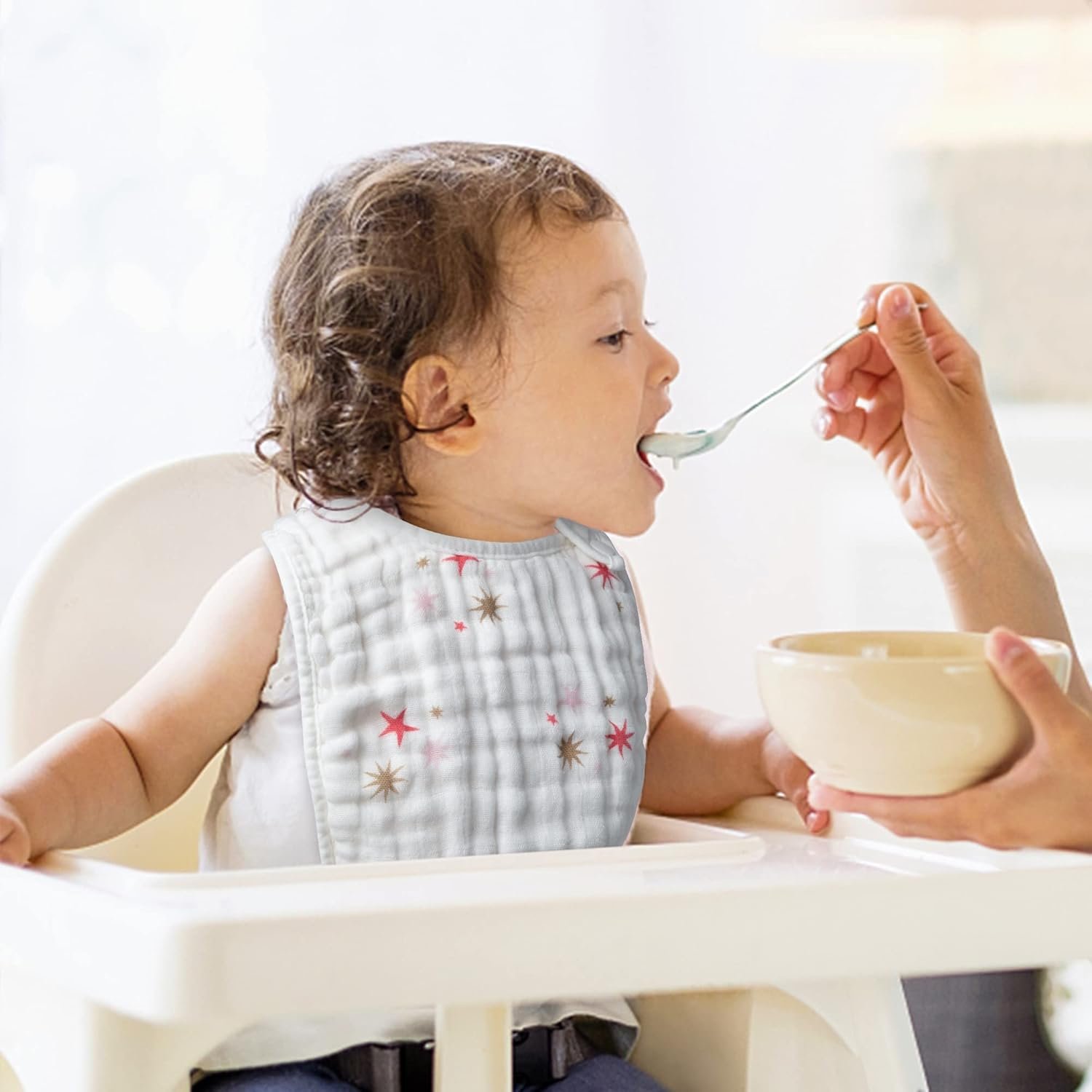 Soft Material: Made of pure cotton muslin, these bibs are lightweight, refreshing, breathable. Make your baby comfortable every day.