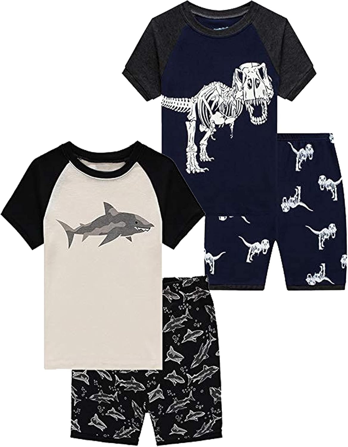Customers find these pajamas to be of good quality, with a nice breathable cotton material and comfortable stretchy fabric. The design features popular animal patterns like elephants and sharks, and customers appreciate that they fit well after washing in cold water. While some customers say they run true to size, others mention they run small. Customers consider them excellent value for the price point.