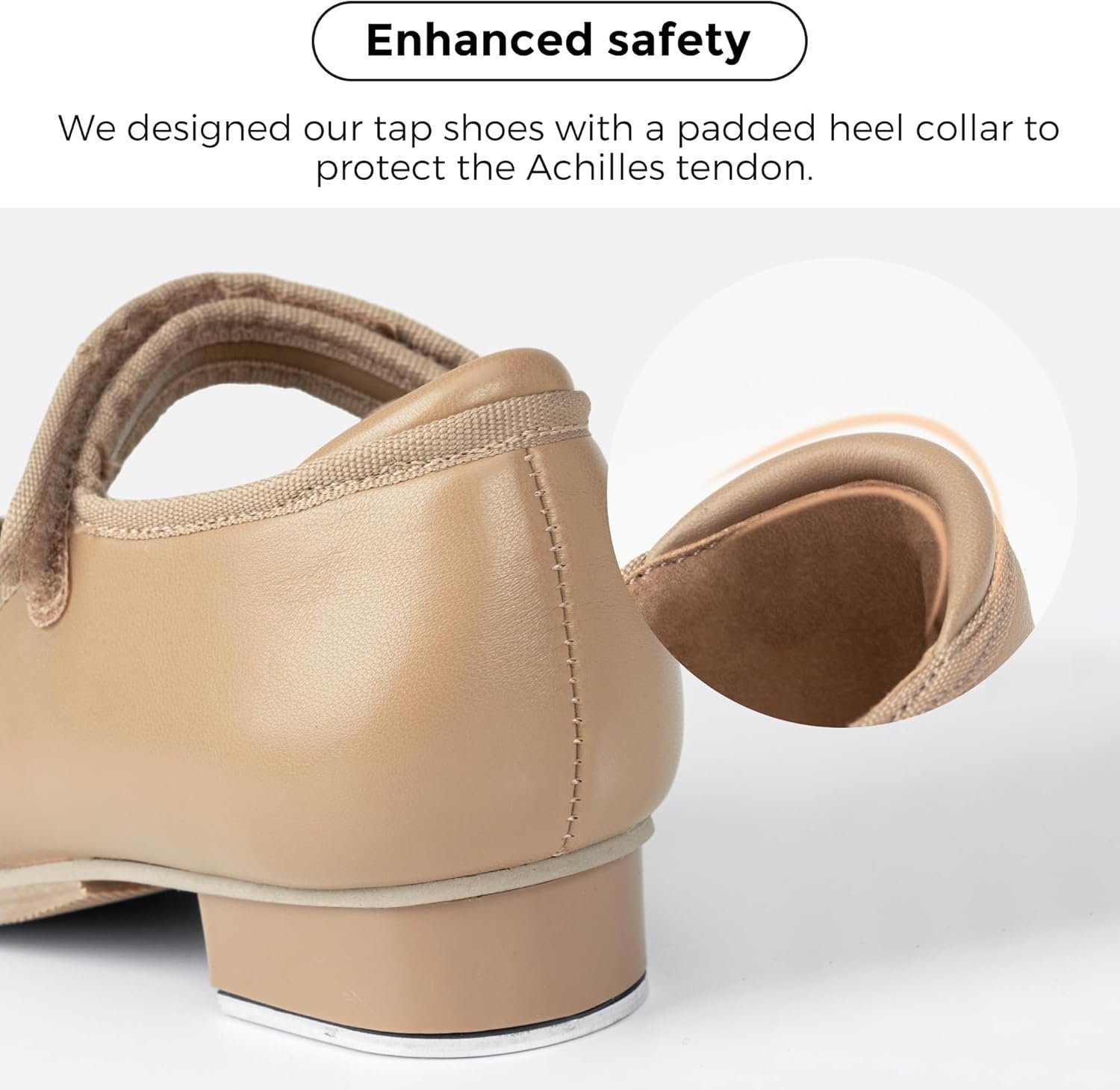 Customers find these tap shoes well-made, comfortable, and easy to put on and off with the Velcro strap, making them perfect for beginners and intermediate dancers. The shoes fit true to size, particularly accommodating wider feet, and customers consider them good value for money. While some customers say they hold up well, others report issues with durability.