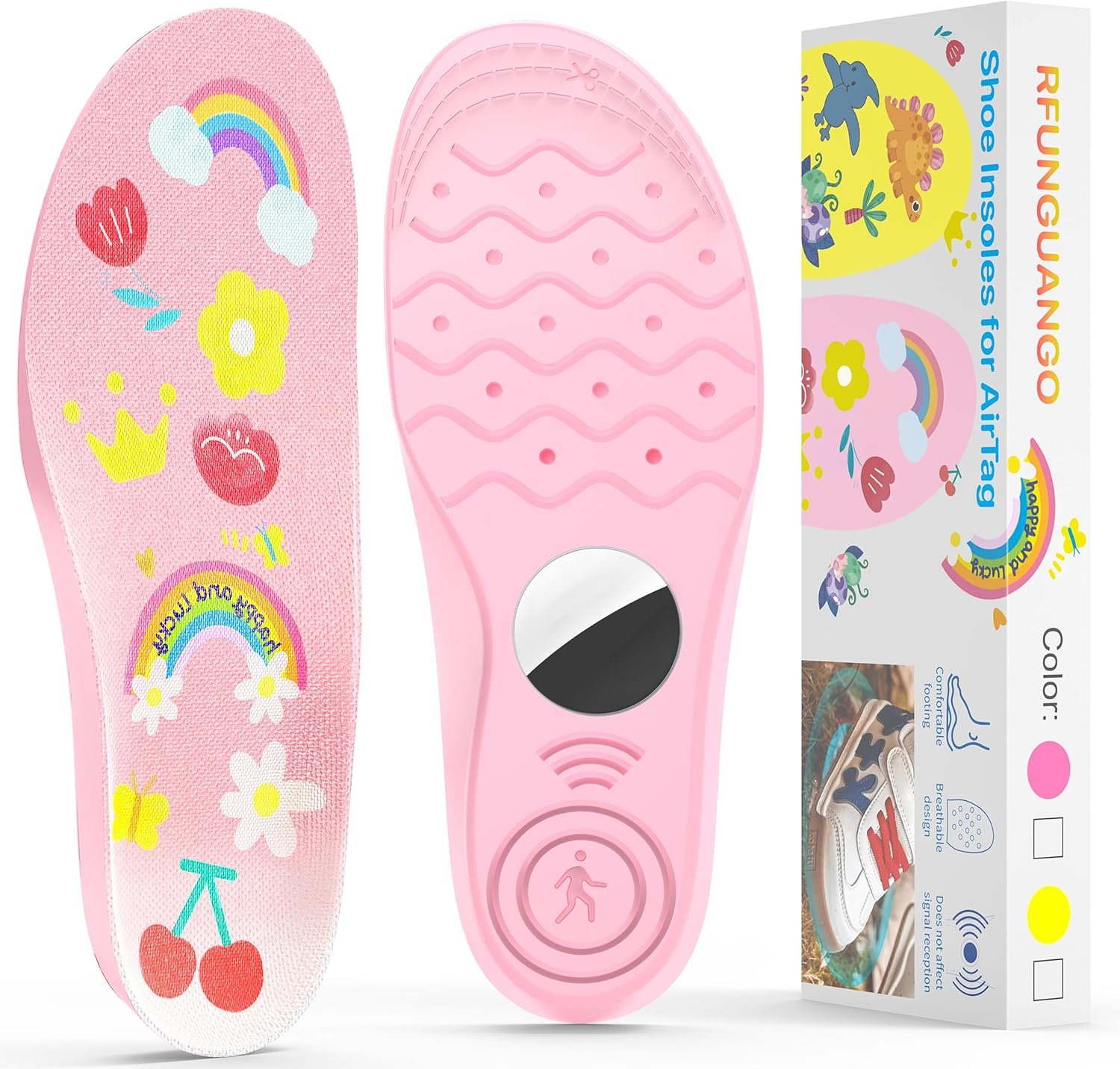 The video showcases the product in use.The video guides you through product setup.The video compares multiple products.The video shows the product being unpacked. airtag children’s insoles Merchant Video