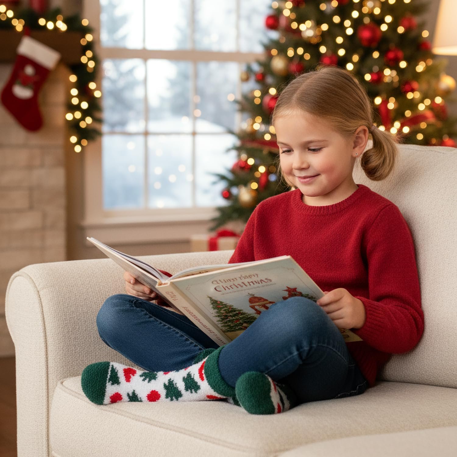 Girls Kids Fuzzy Socks with Grips Toddler Non Slip Slipper Socks