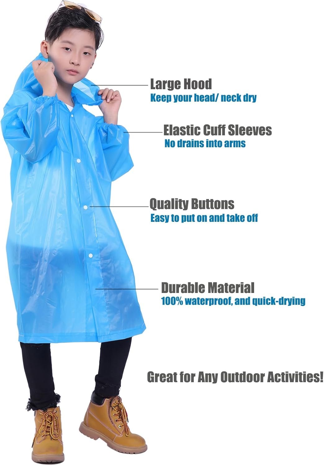 The elastic wristbands gently hug the wrists, keeping rain out and ensuring comfort while kids play, take photos, or record videos without worrying about getting their clothes wet.