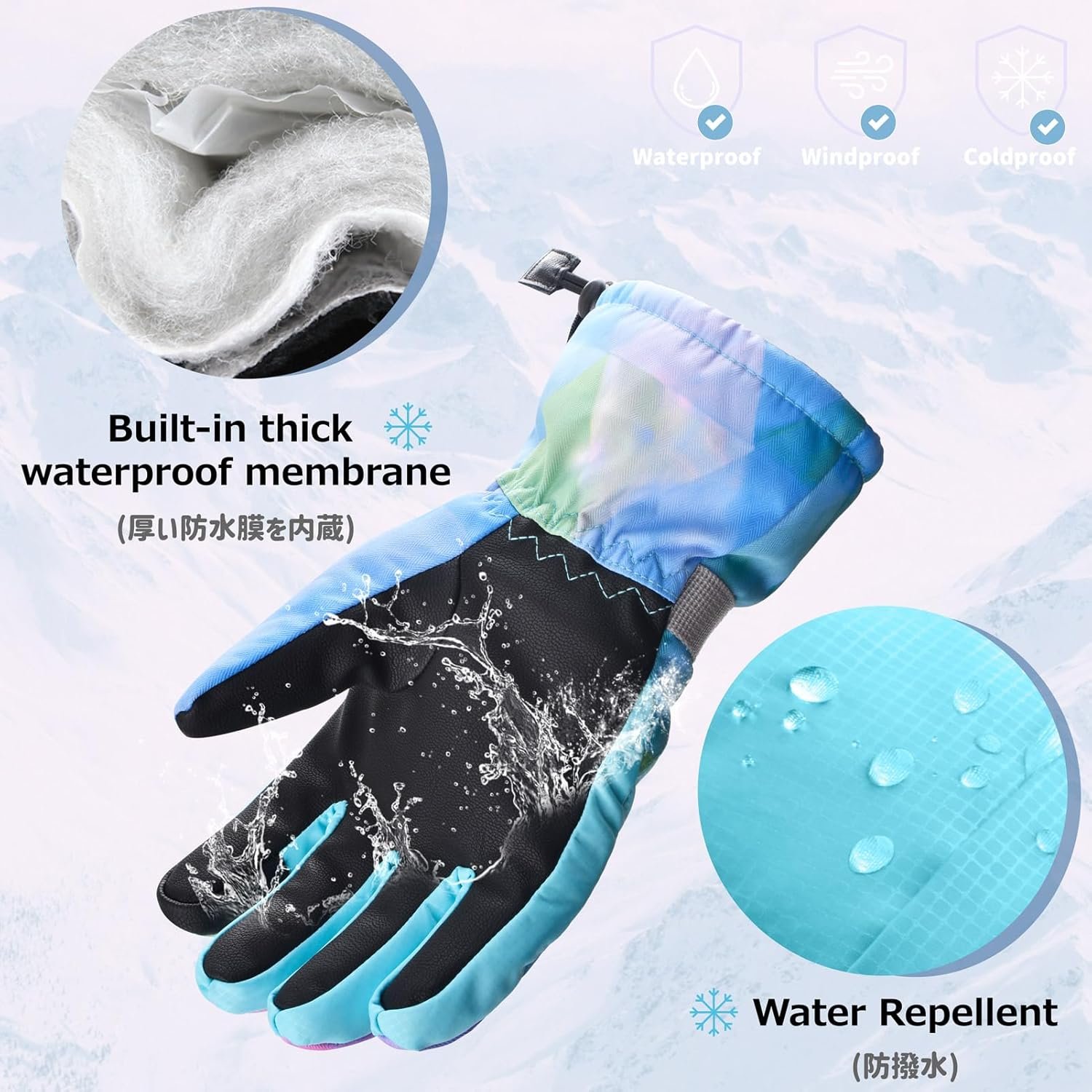 Super Warm: This ski gloves are made of professional ski clothing fabric and liner is made of thicken smooth fleece, which helps children to withstand the cold weather and protect kids from suffering frostbit. Children’s gloves are very soft and comfortable to wear, perfect for active kids who like to run around outside!
