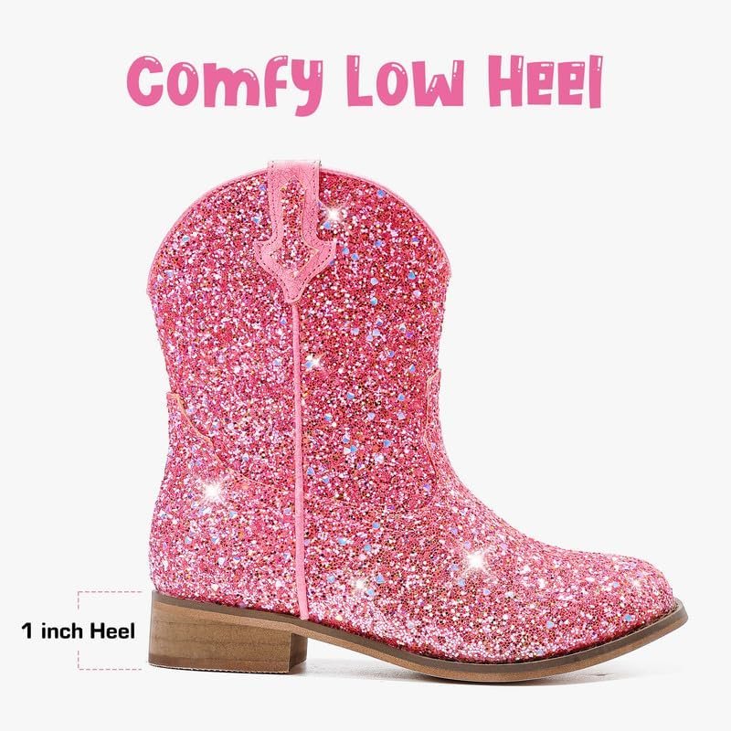These toddler cowboy boots are a great addition to your little girls wardrobe.These ankle girls cowboy boots are made with glitter design,they are not only stylish but also fun to wear.