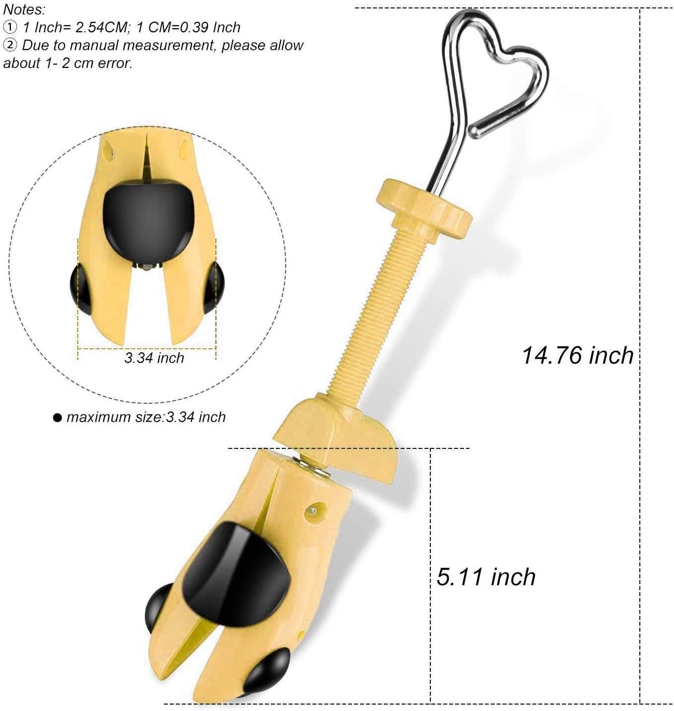 Shoe stretcher stretches length and width of shoes for a comfy custom fit. Our shoe expander is made of premium plastic and metal material, along with 4 pressure relief plugs and 2 height pads that target tight or painful areas caused by blisters, corns, or bunions.