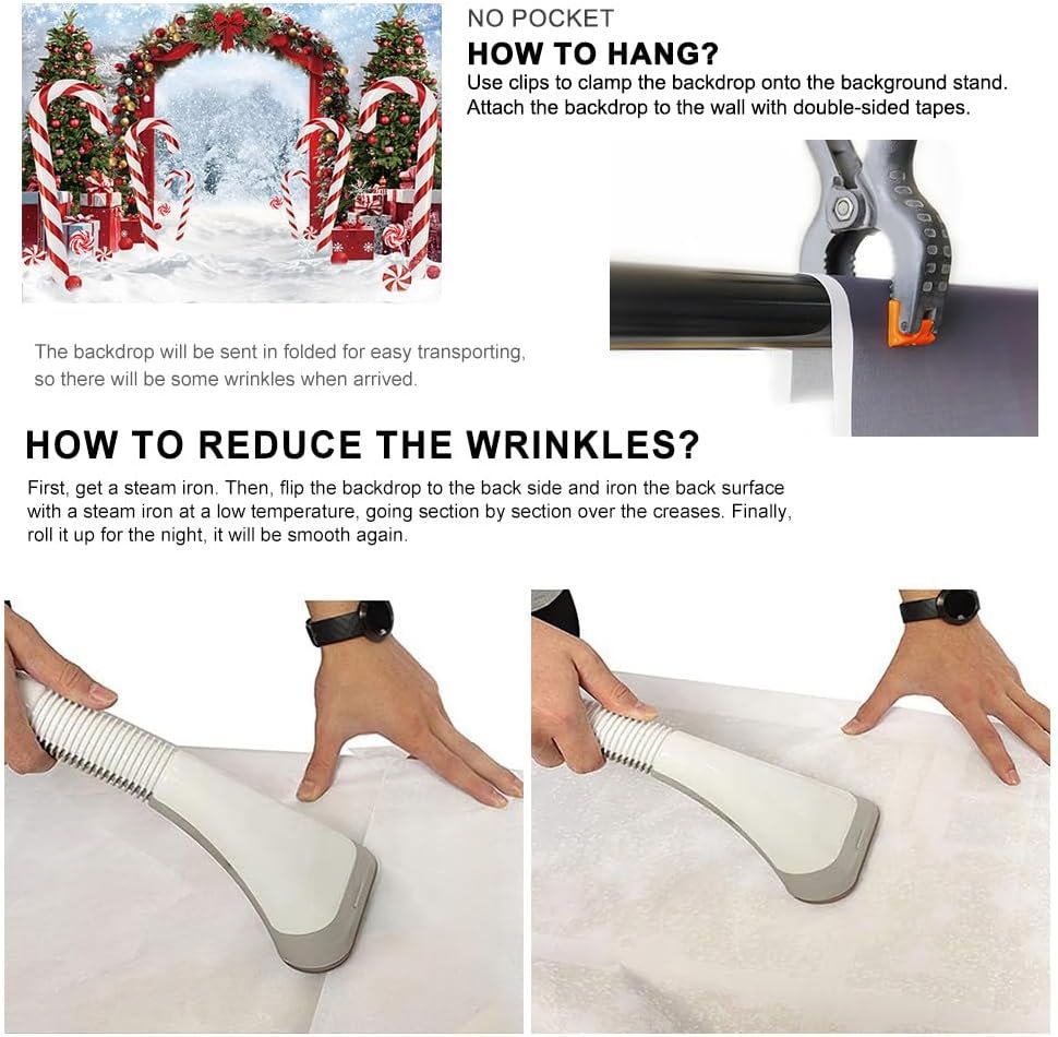 Warm Tips: The backdrop will be sent in folded for easy transporting, so there will be some wrinkles when arrived. You can iron the back surface of the backdrop with a steam iron at a low temperature, going section by section over the creases, it will be smooth again