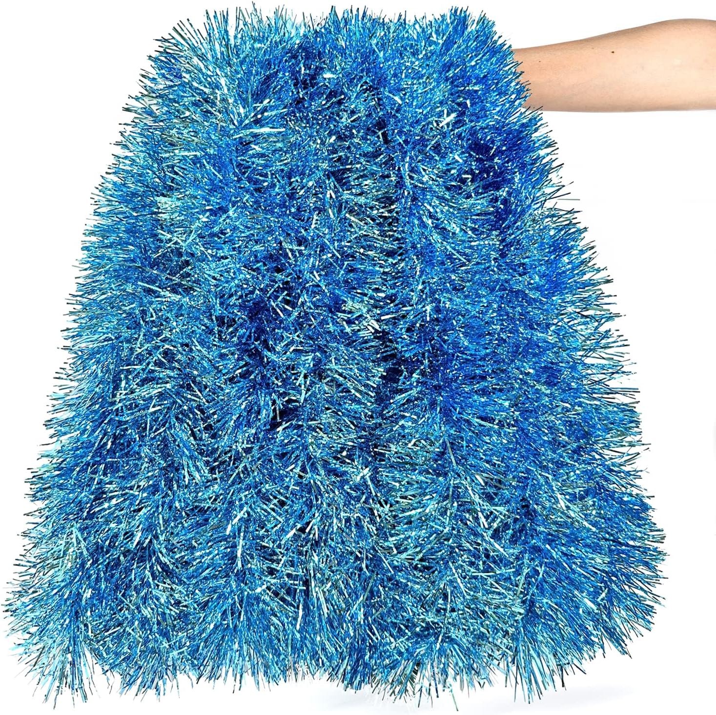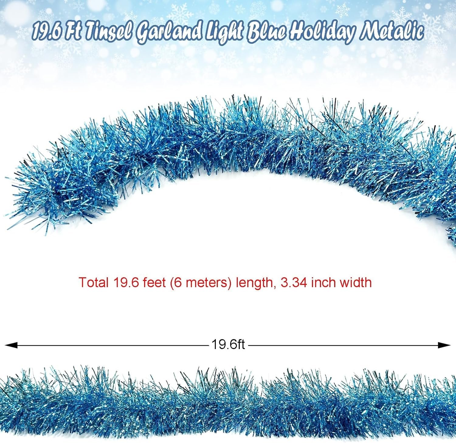Package Include:1 × light blue tinsel garland. Size: 19.6 ft (L) × 3.5 inch (W)