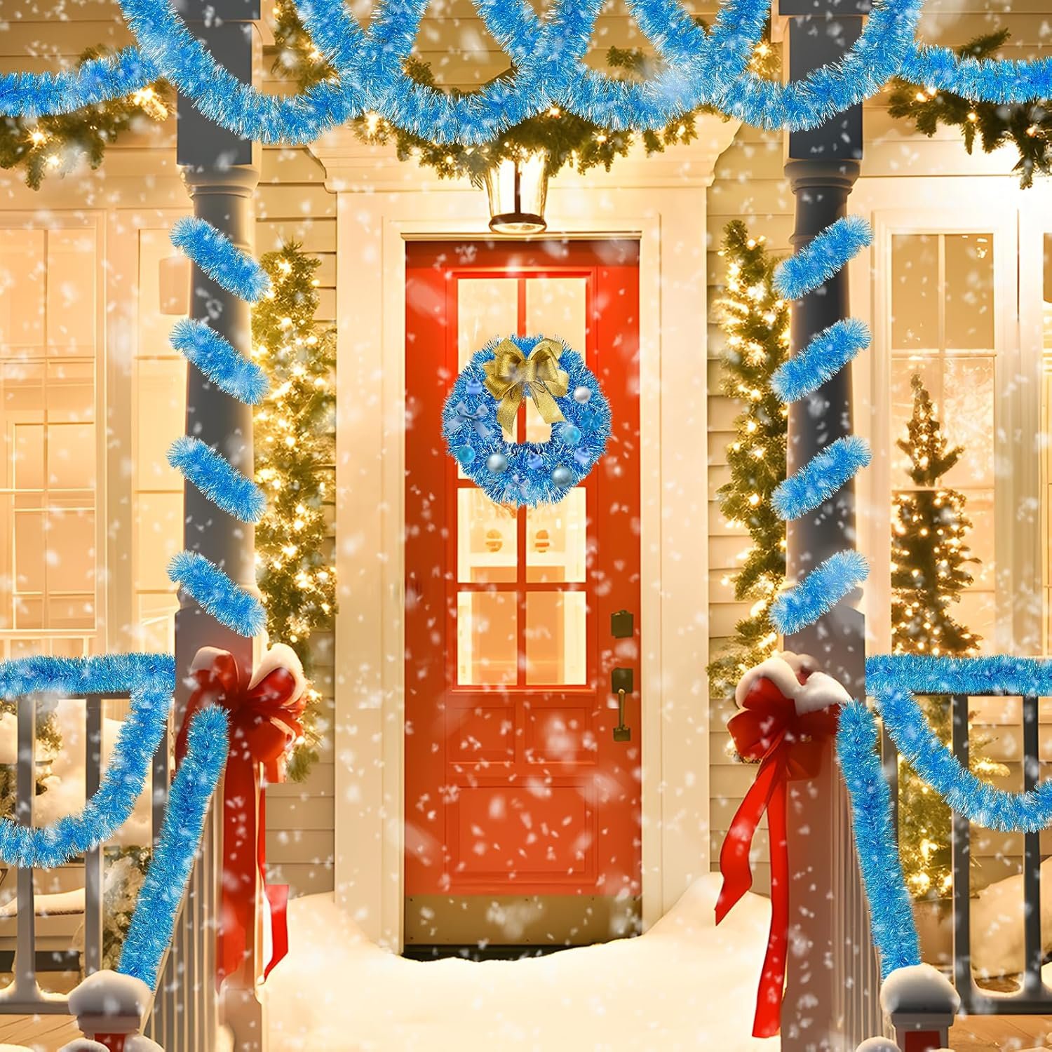 Christmas Tinsel Garland: The light blue tinsel garland adds a calm winter ambiance that evokes images of snow, ice, and peaceful winter skies. It makes your home feel refreshing and bright and look like a Christmas winter wonderland!