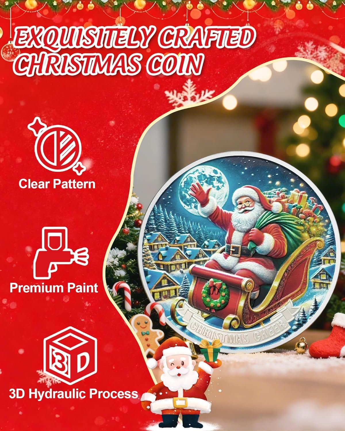 A Timeless Holiday Keepsake – Evoke the Christmas Spirit: This Christmas coin captures the essence of the holiday season with its rich design, festive motifs, and meaningful message. Whether displayed as a decoration, used as a holiday badge, or gifted to loved ones, this Santa Claus commemorative coin serves as a timeless reminder of the warmth, love, and joy that Christmas brings to every heart