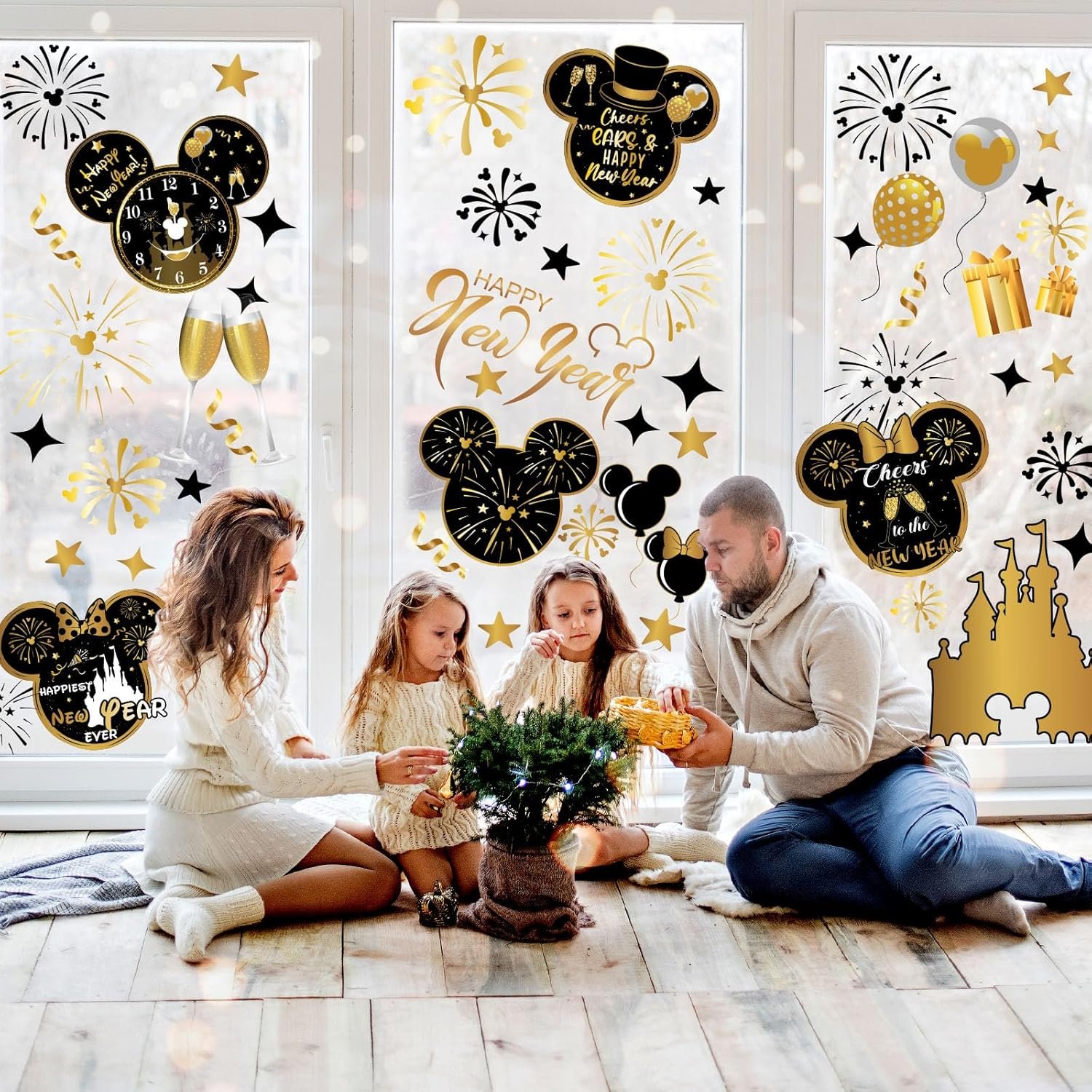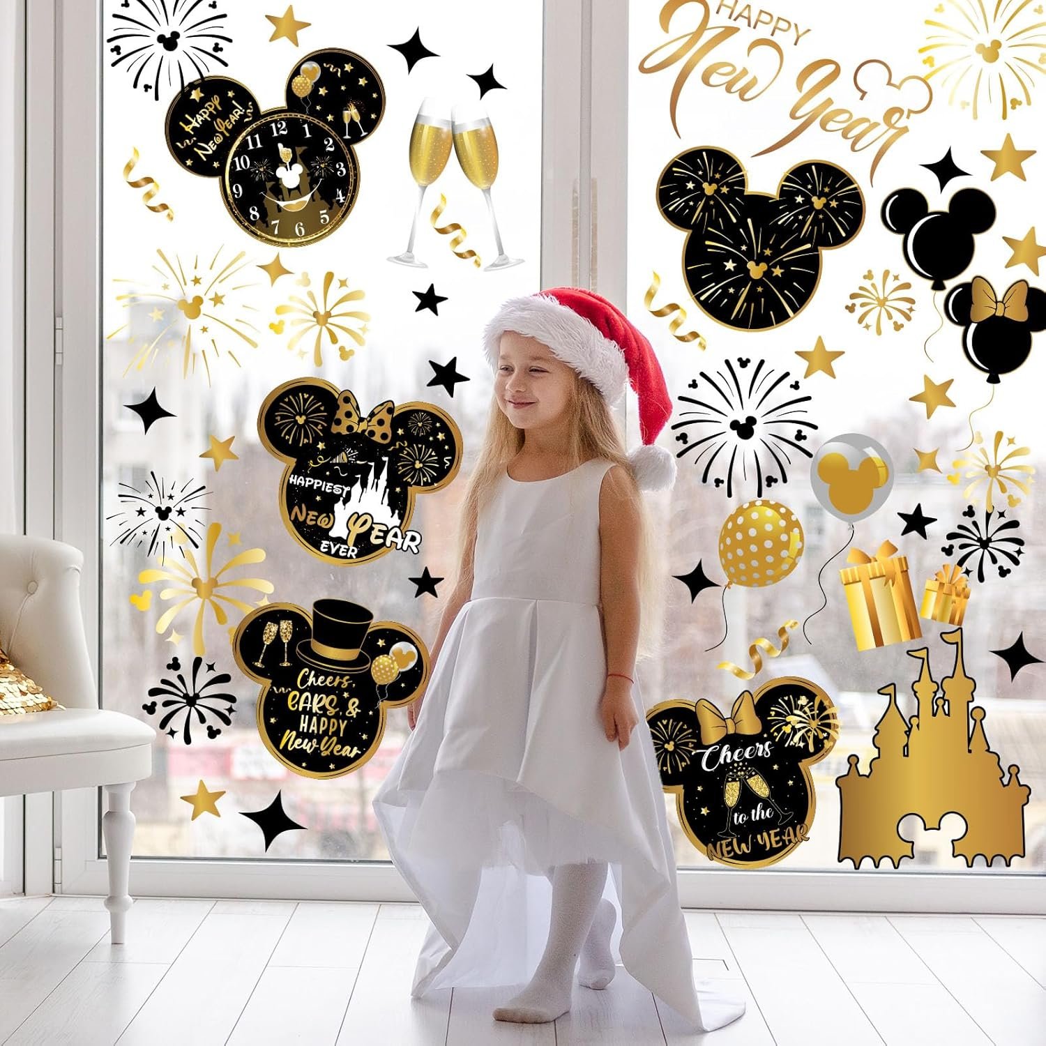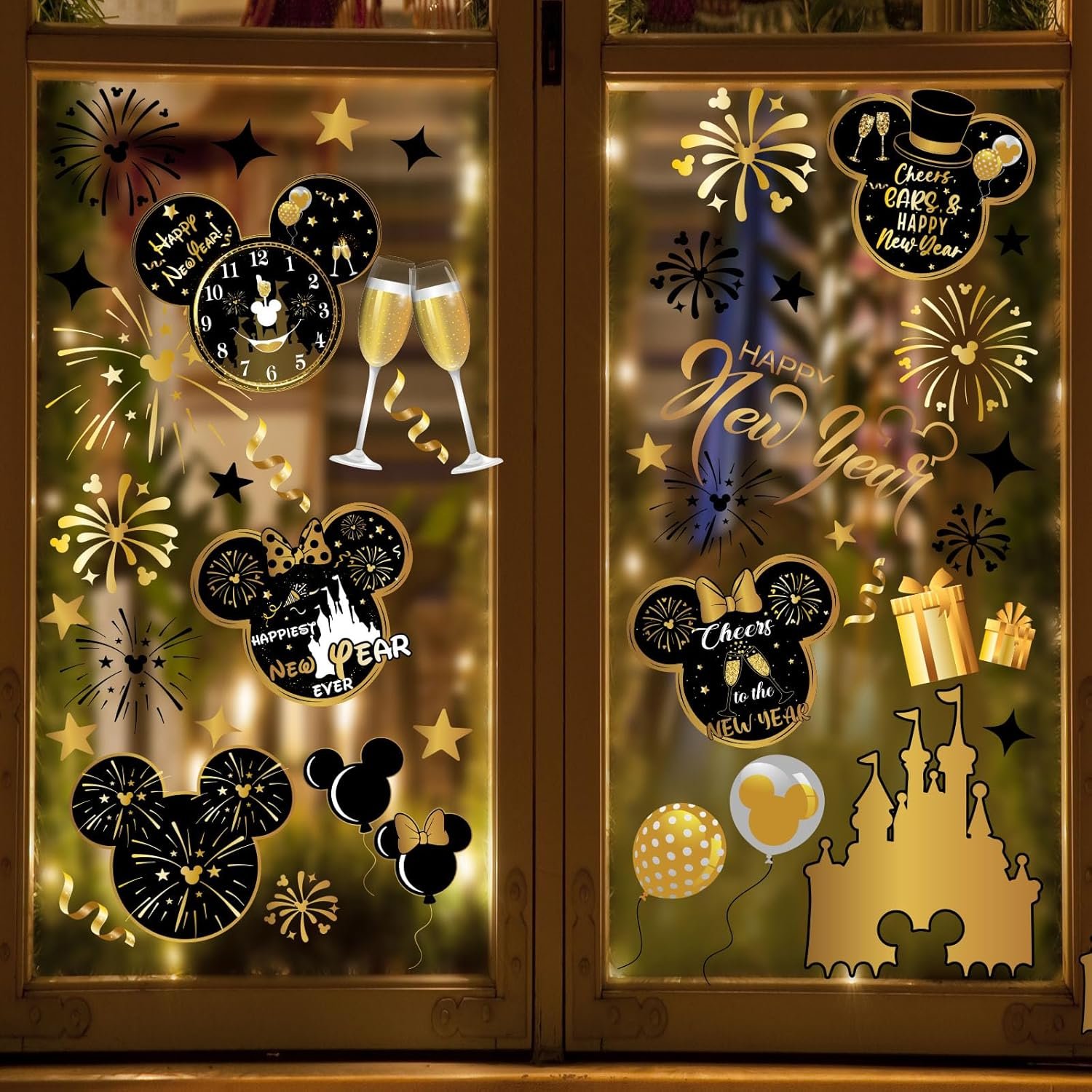 🎄【Cute Design】New year window clings are designed with the theme of Mouse. The mouse Christmas window clings contain various patterns of Mouse, balloons, castles, fireworks, champagne, stars, etc., making them very suitable for new year decoration.
