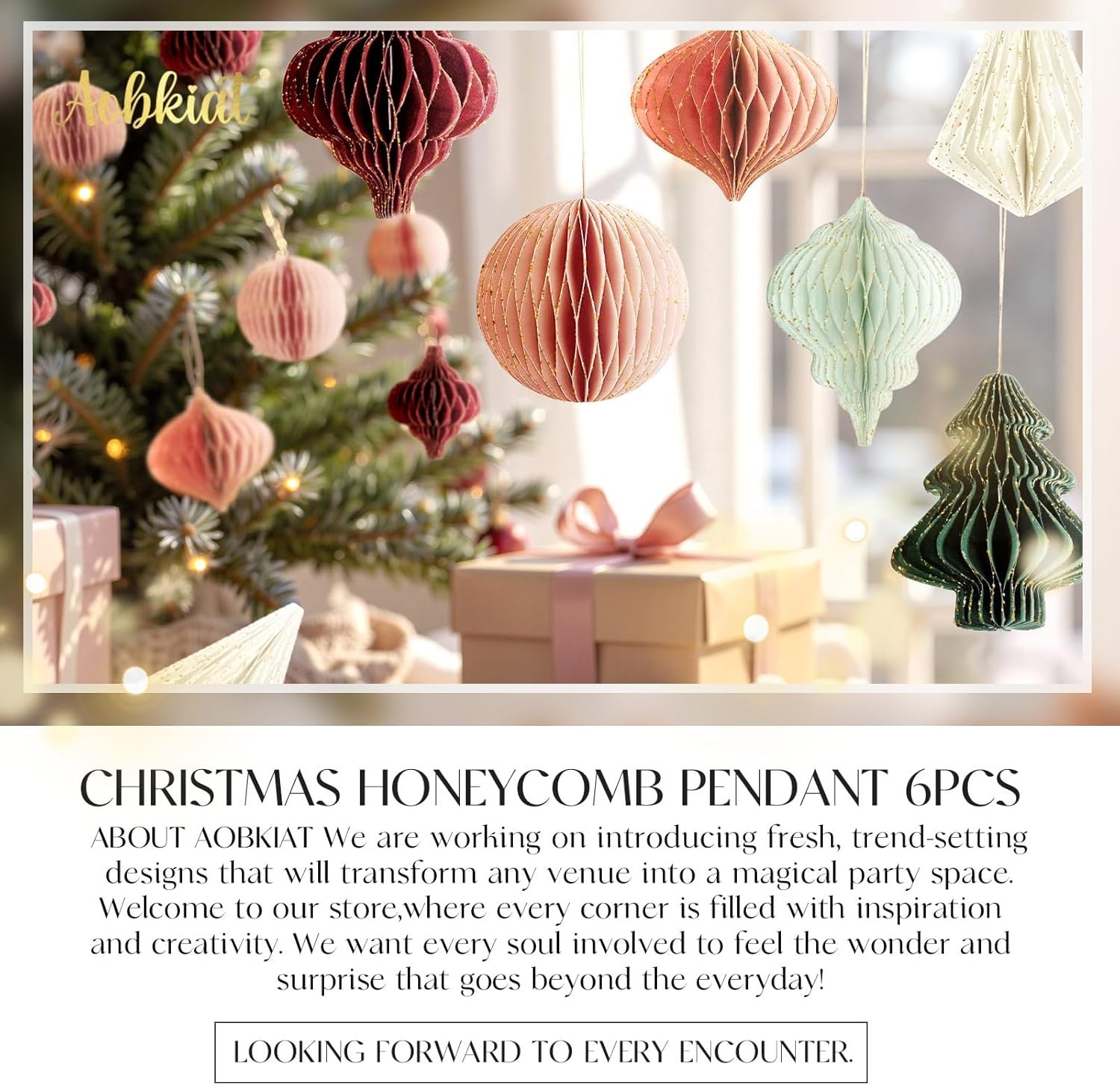EXQUISITE DESIGN – The round, Christmas tree-shaped design combined with flashing edges makes the honeycomb decoration more delicate. The unique shape combination of Christmas honeycomb is impressive.