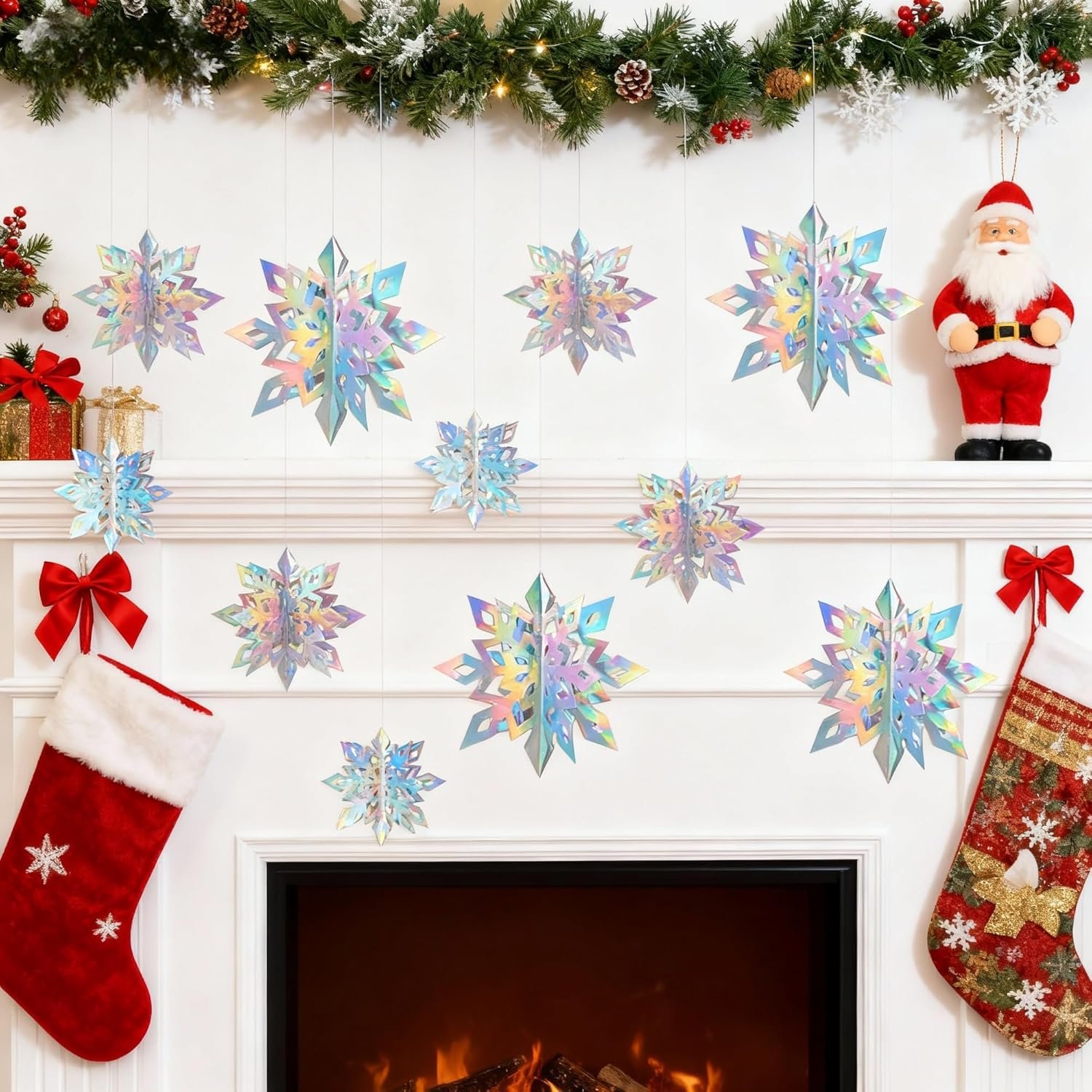Premium Quality: Crafted from high-quality iridescent paper, these snowflake garlands are firm and lightweight; The reflective finish adds a stunning shimmer to any setting; They can be easily folded flat for convenient storage and reused year after year