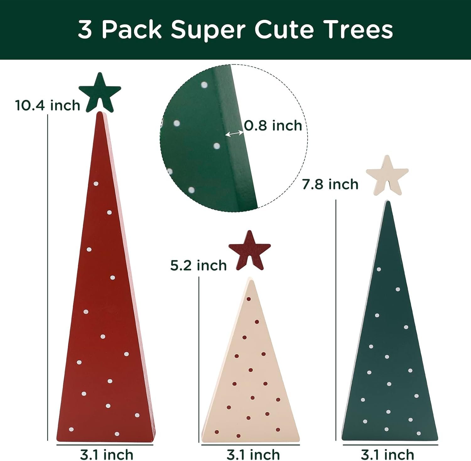 Premium Quality–Made from quality wood.The Christmas trees are painted red, green and white with polka dots add to the sweetness of this decor.