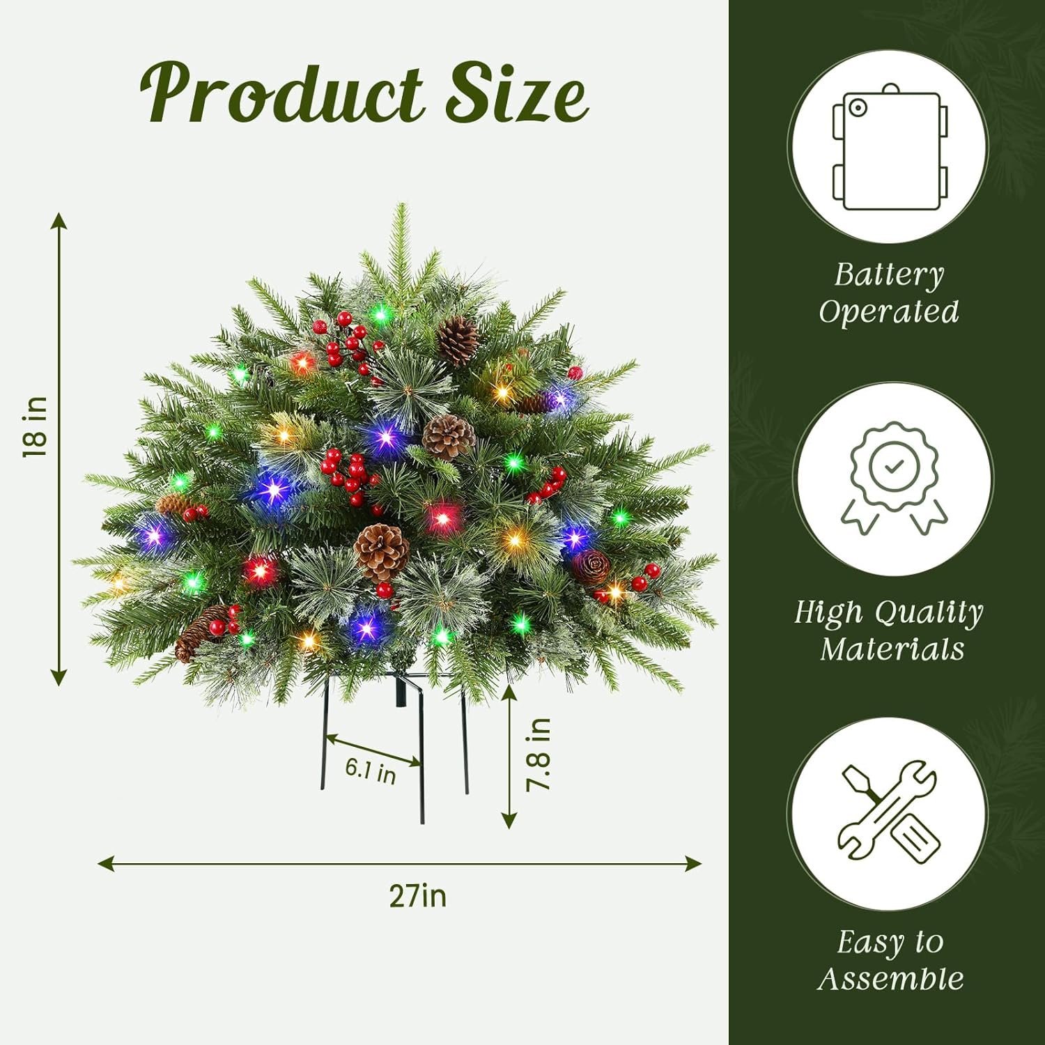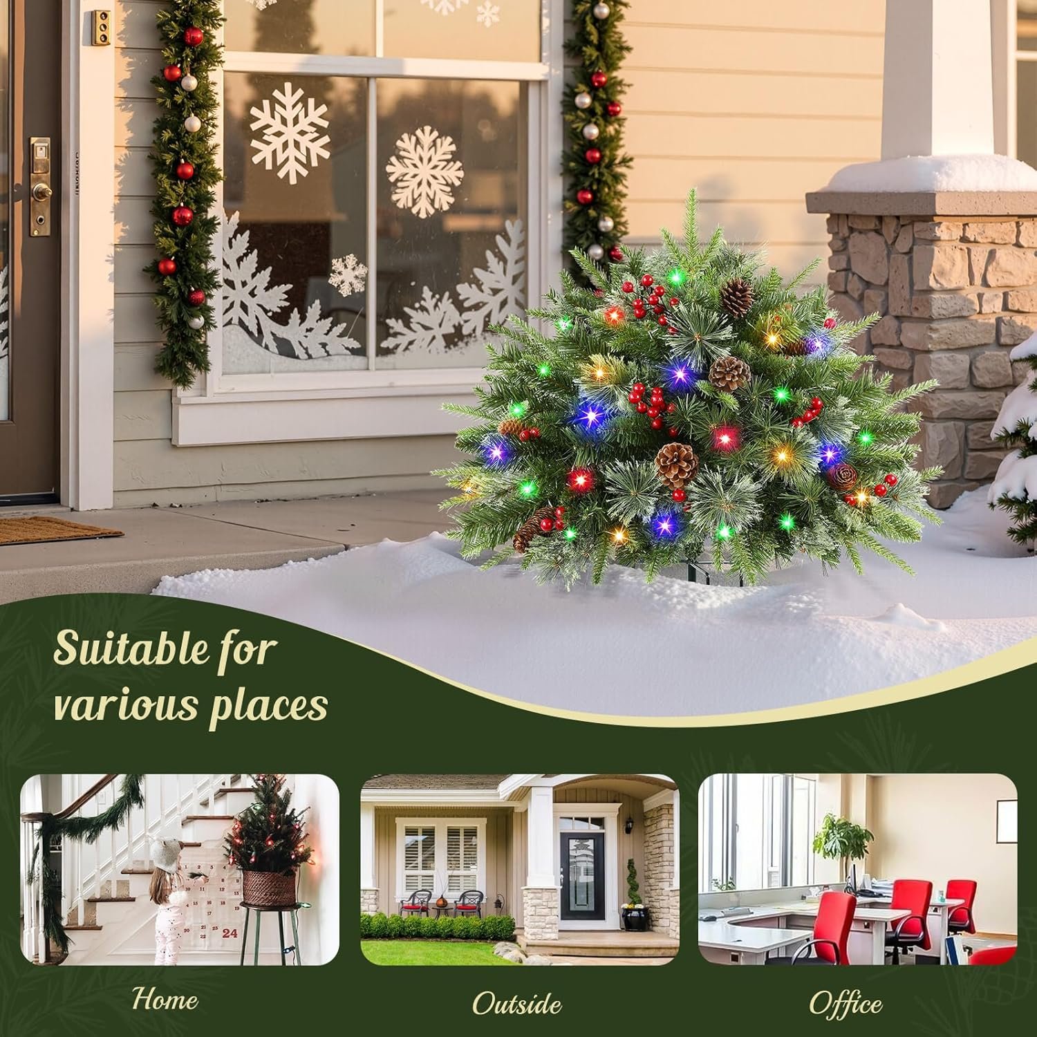 【Pre-lit Lights&Pre-Decorated Design】The tree comes with 50 warm white and colored LED lights, tree features a lush blend of PE/PVC needles for a lifelike appearance, pre-decorated with 12 vibrant red berries and 12 pinecones for instant holiday charm.