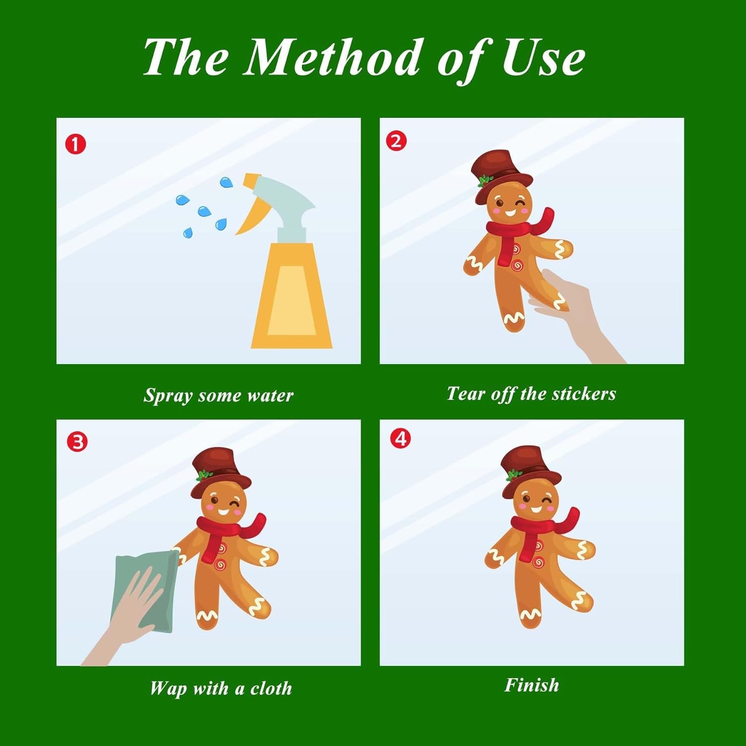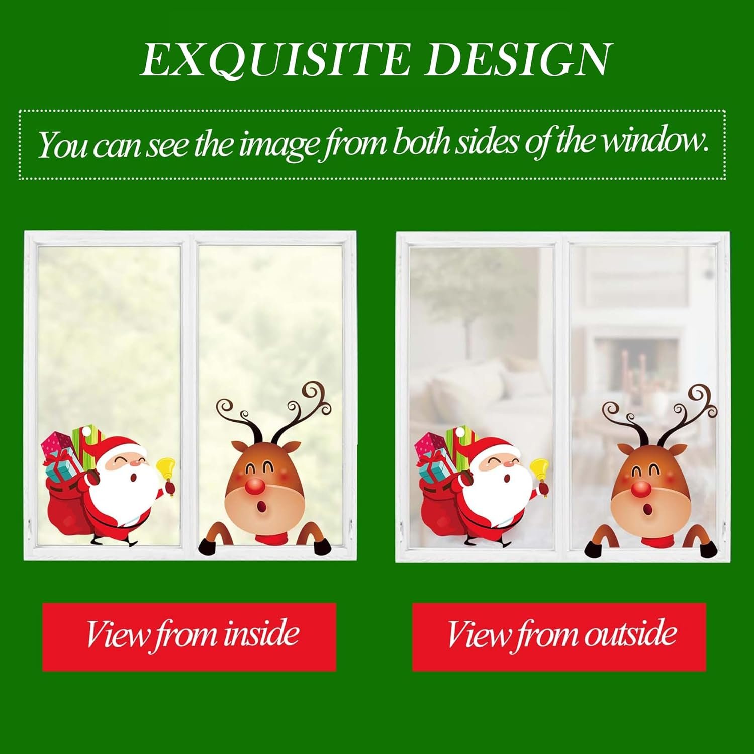 【CHRISTMAS WINDOW CLINGS DECORATIONS HAS NO ADHESIVE】 Christmas window stickers are DOUBLE-PRINTED clings, Not need glue, spray a little water on the surface before stick it on window, water will make them stick better