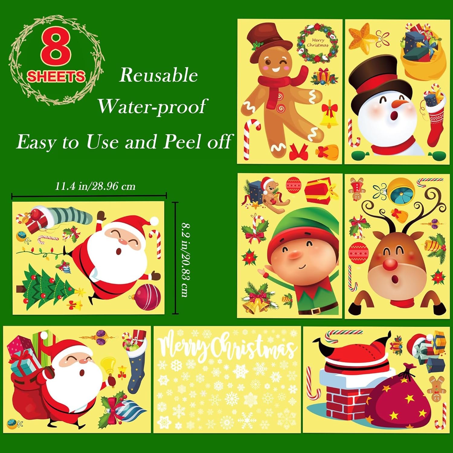 Christmas window clings are made of premium material, on-toxic so that you can use Christmas decal without worries. Santa window clings for glass windows are sturdy, reusable and durable, and will not damage your windows when you peel the Xmas window clings for kids off.