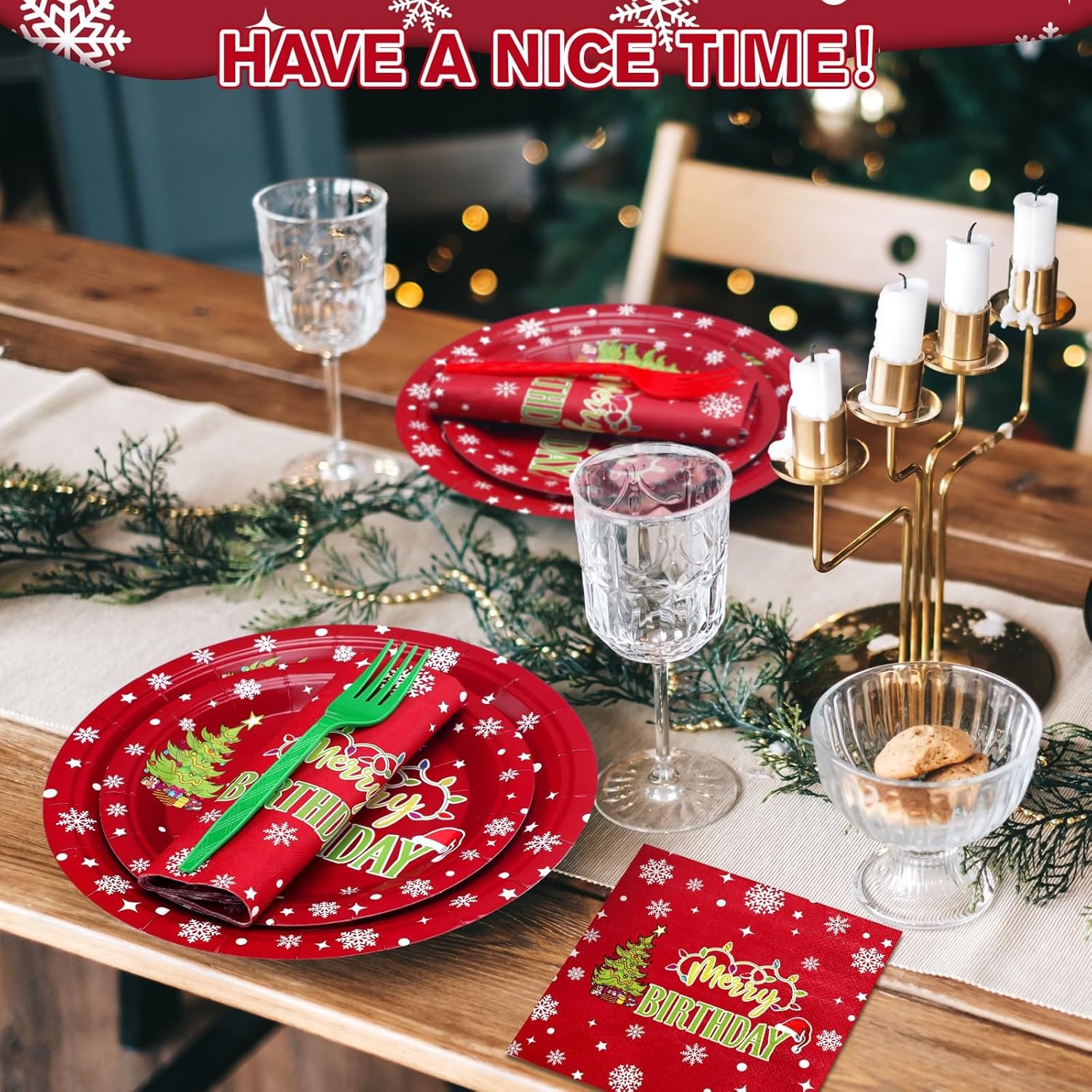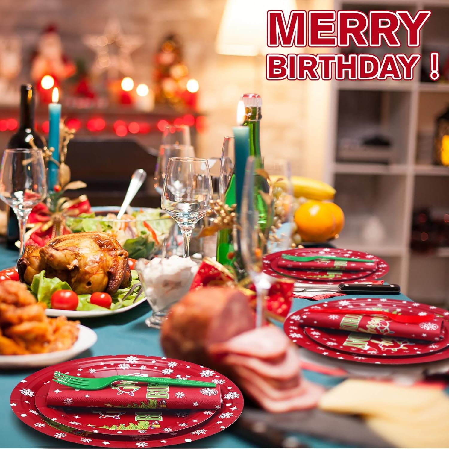 Applicable for Many Occasions: the versatility of our Christmas plates and napkins set makes it suitable for any event; Whether it is a Christmas birthday party, catering event, family gathering, or just a celebratory occasion, your event will get all dressed up with our lively and cute disposable merry birthday party supplies