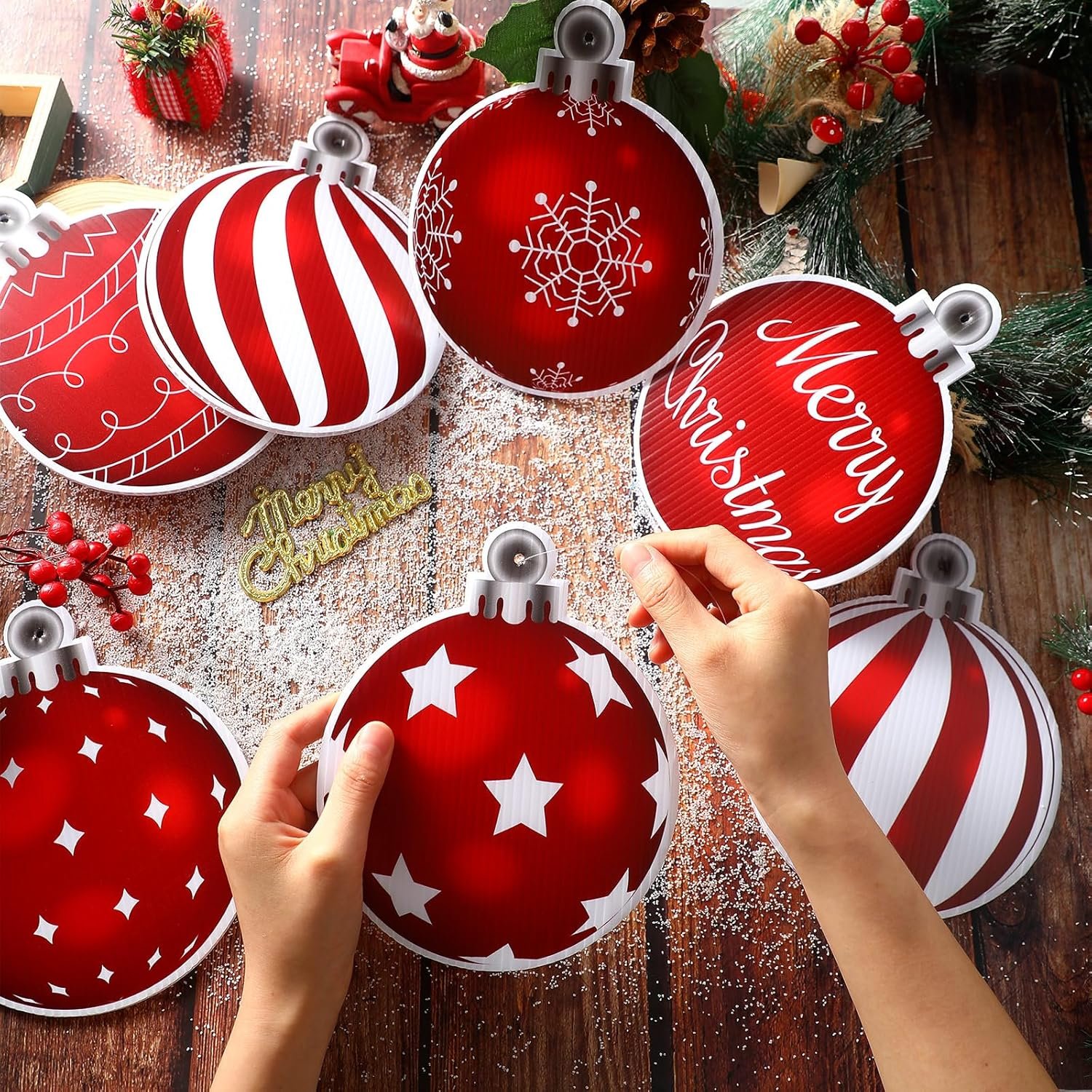 Size Details: the Christmas outside yard decorations are available in a generous size, about 10.4 x 8.4 inches/ 26.5 x 21.5 cm and about 7.2 x 5.9 inches/ 18.5 x 15 cm in diameter respectively; This larger size enables the decorations to be more visually striking, making them ideal for outdoor festive settings