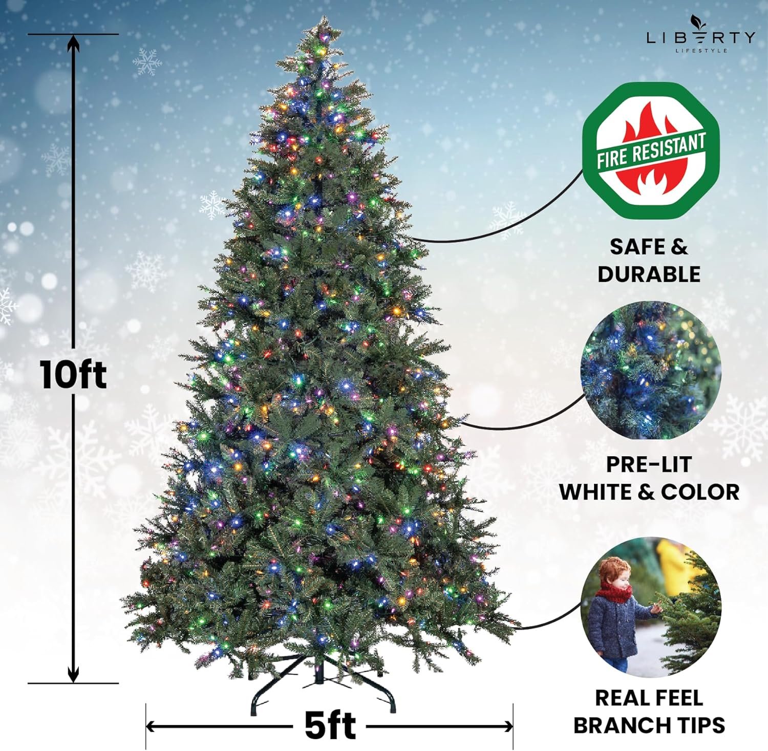 10’ft Artificial Christmas Tree with Warm White and Multi-Color LED Lights. Christmas Tree is with lively, realistic-looking, lush green foliage to brighten your home this holiday season.