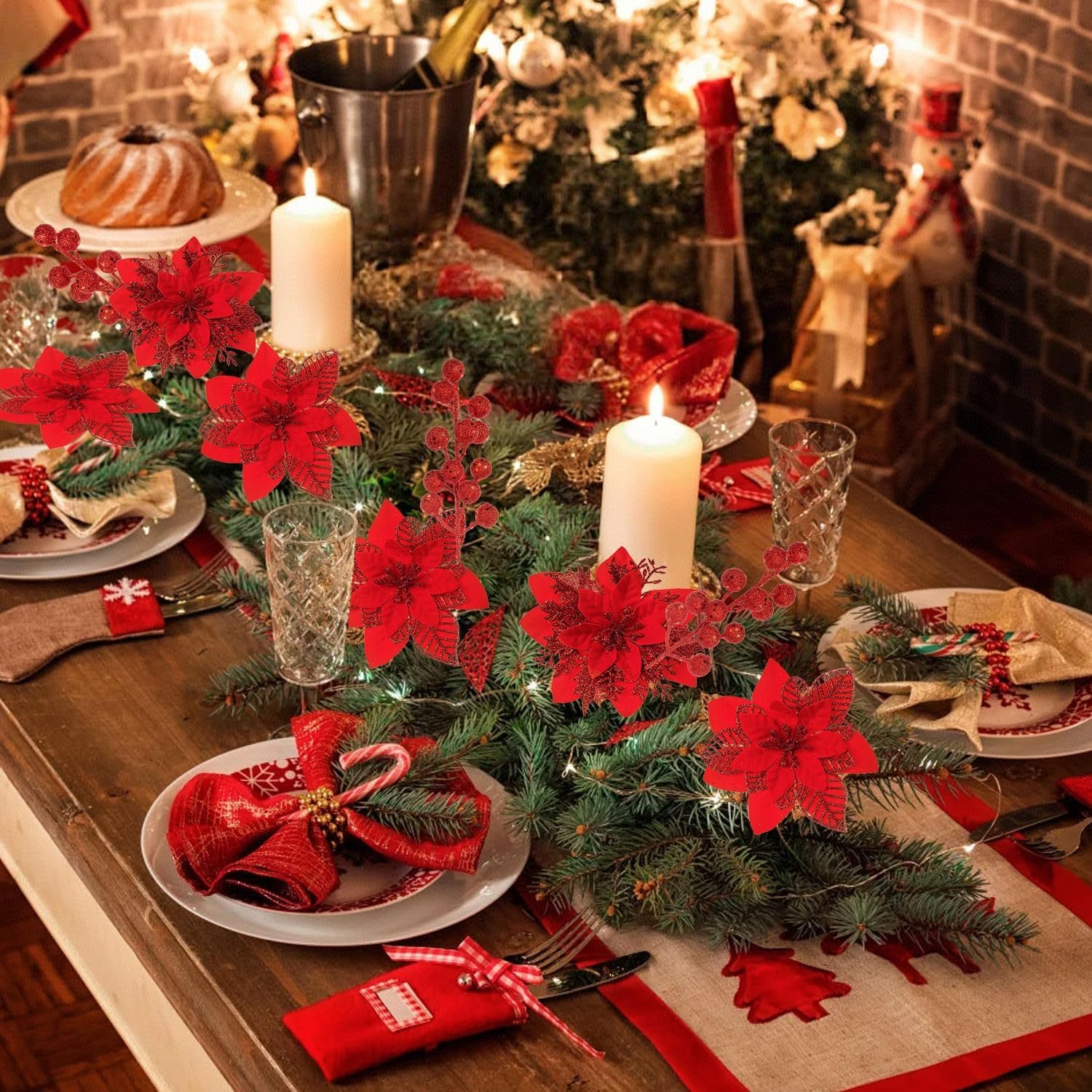 BEAUTIFUL CHRISTMAS FLOWERS DECOR SET red flowers decor for tablered flowers decor for table
