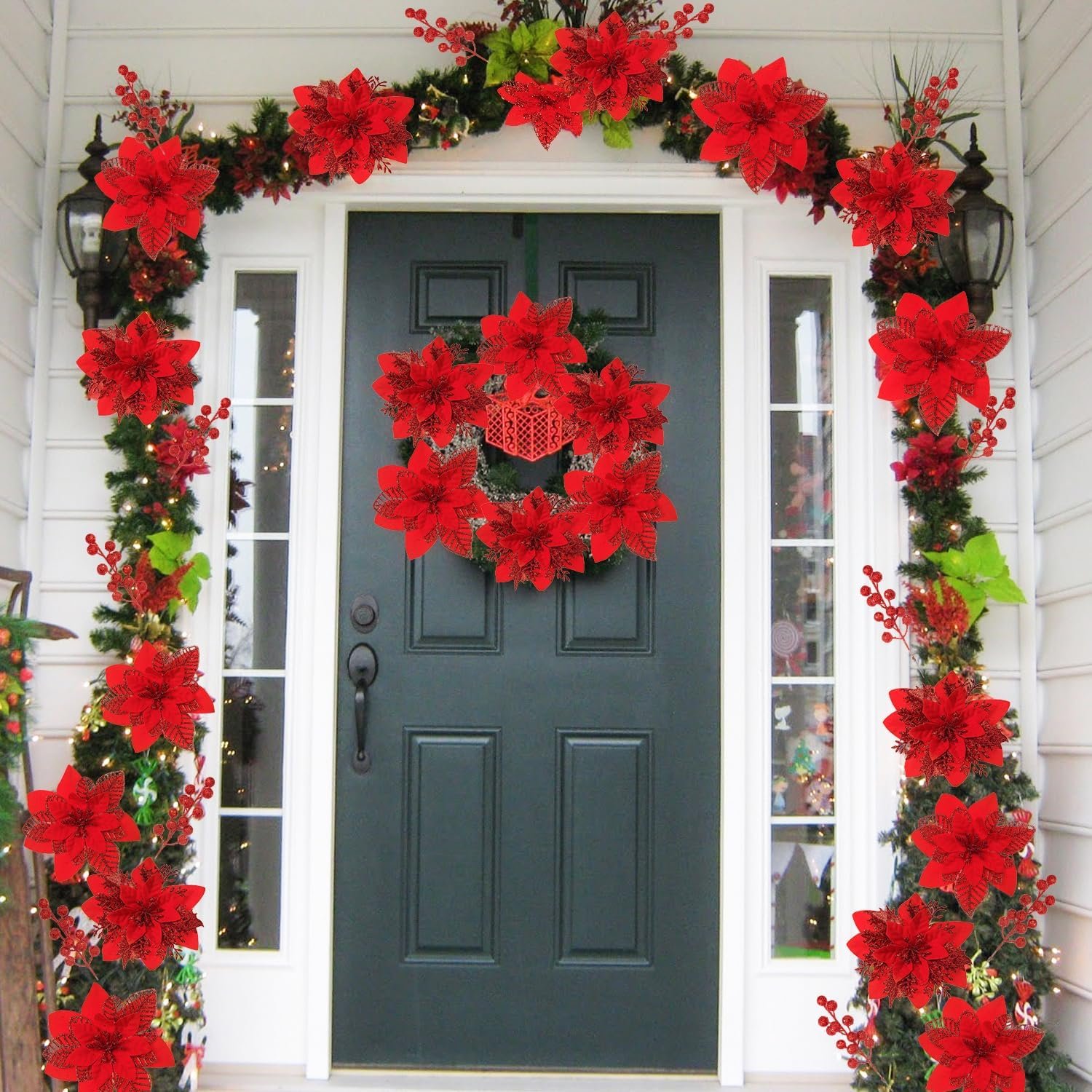 Decorate Various Scenes For Christmas red flowers for door decorred flowers for door decor Front Door Decor red flowers for stair handrail decorred flowers for stair handrail decor Stair Railing Decor red flowers for wreath decorred flowers for wreath decor Christmas Wreath Decor red flowers for tree decorred flowers for tree decor Christmas Tree Decor