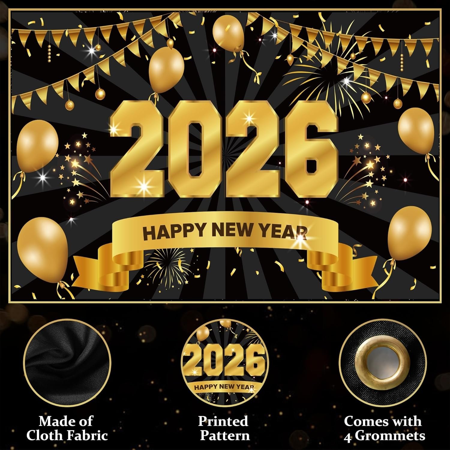 WIDELY USED: Beyond the New Years decorations 2026backdrop, this Happy New Year supplies can be used in various indoor and outdoor spaces. Hang it in your living room, balcony, yard, or party venue. The exquisite design and high-quality craftsmanship will undoubtedly impress your visitors.