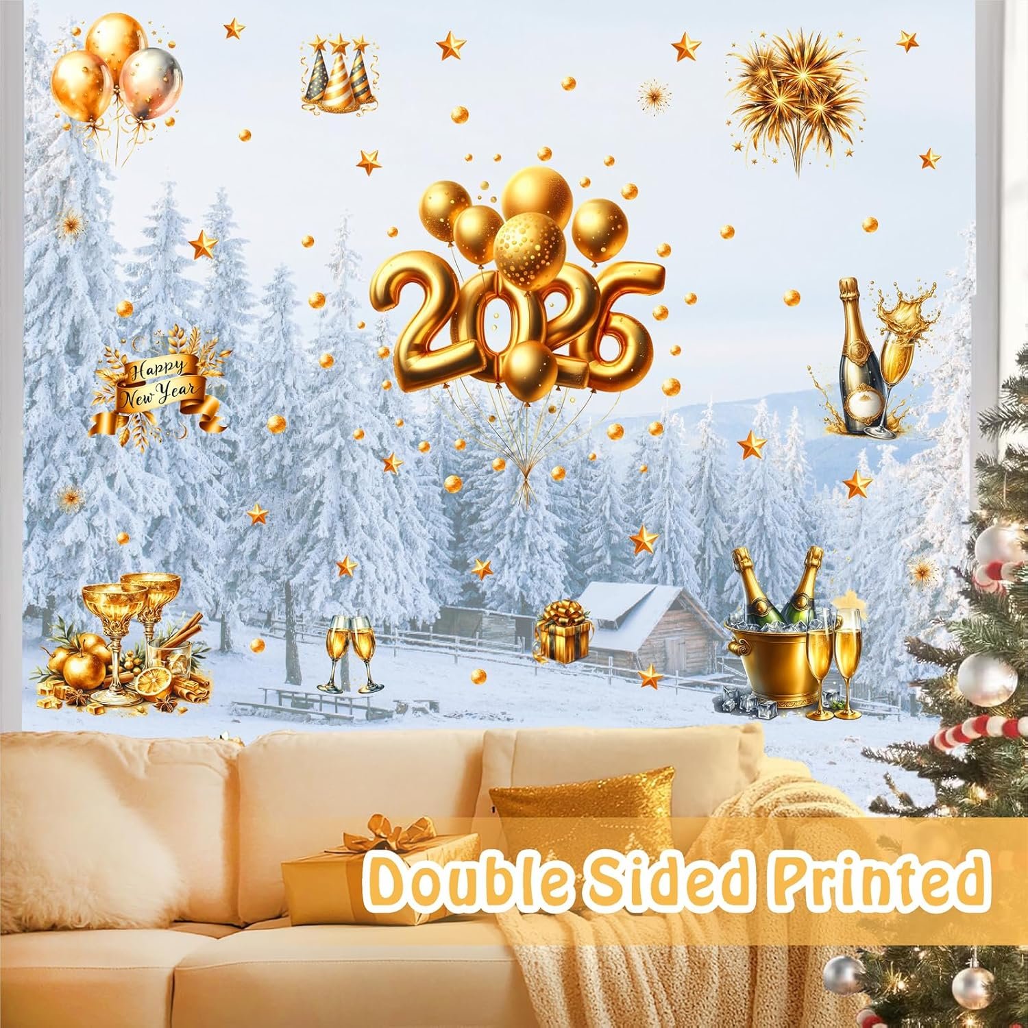 Reliable Material: Double-Sided 2026 New Years Eve Window Decal is made of quality vinyl material,good for Christmas party,New Year party,festival,winter holiday party,kids bedroom,living room,bathroom,bedroom,TV background,kitchen and so on