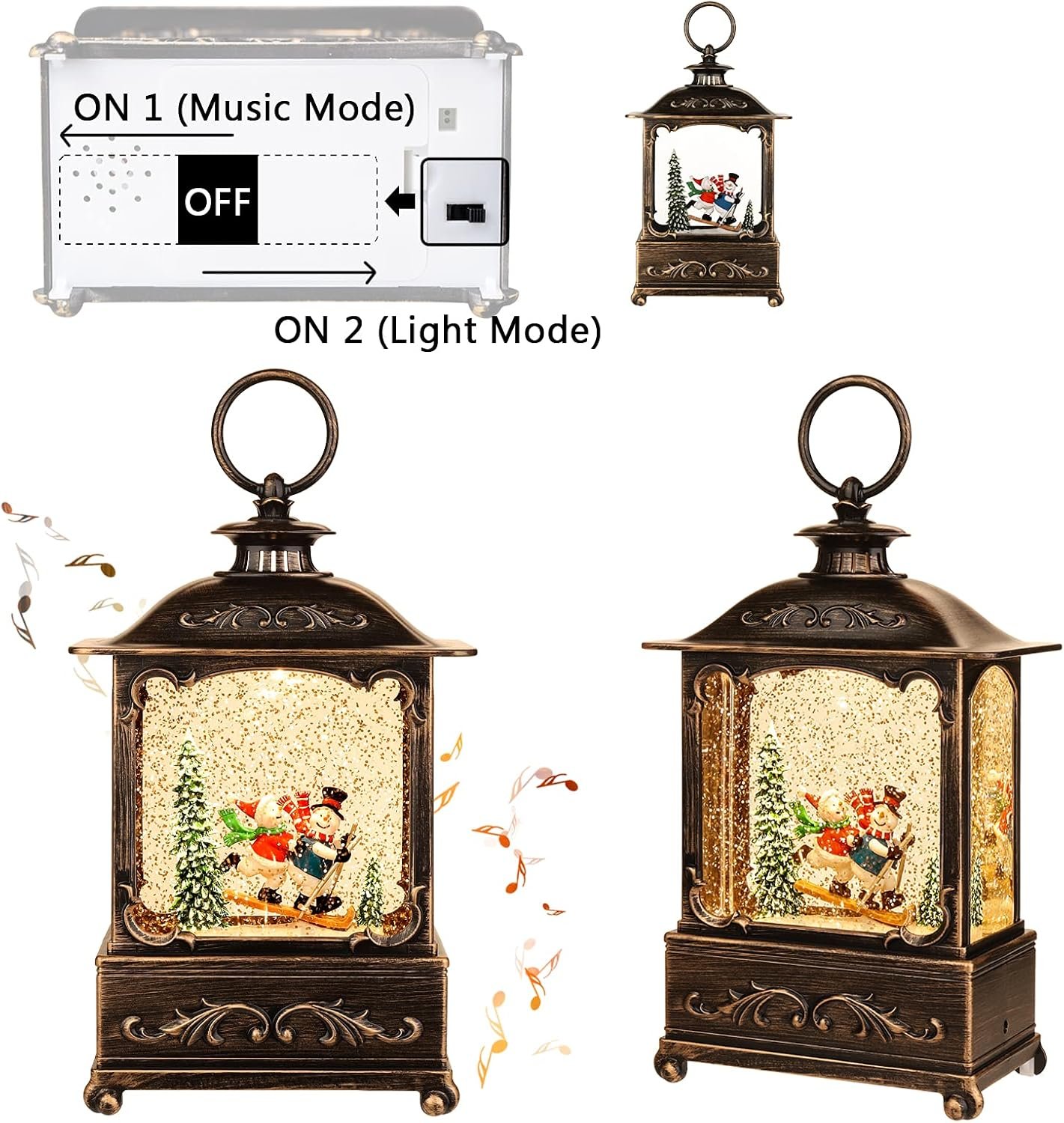 Christmas lanterns with retro appearance and modern design,with music function,8 blessing songs, unique decorations,Christmas eve Christmas eve decoration gifts for every family. Suitable for display in the living room corridors,outdoor parties,Bring you a different atmosphere and environment,and at the same time have interesting snowball decoration lanterns