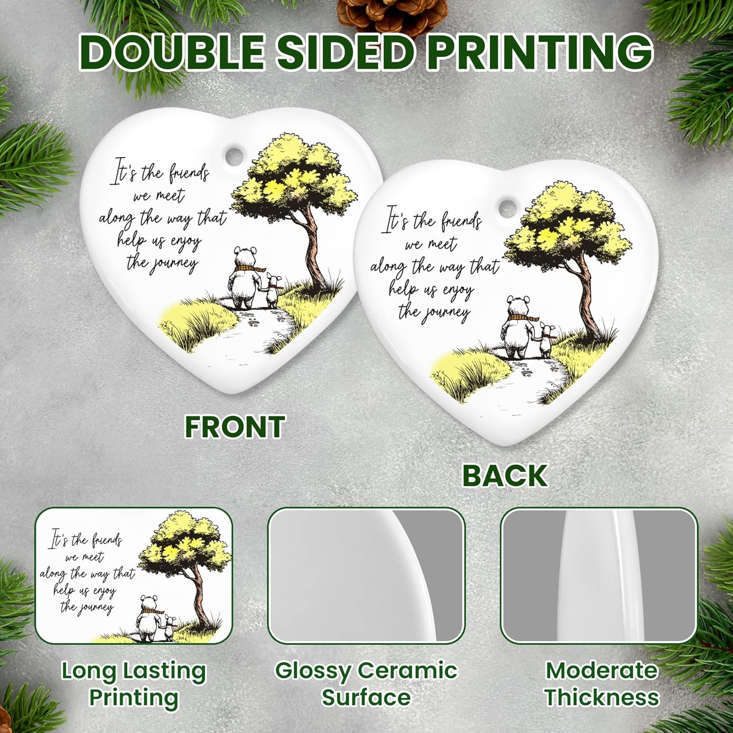 HIGH-QUALITY CERAMIC ORNAMENT – Crafted from premium ceramic with a glossy finish, these friendship Christmas ornaments resist fading and wear. A standout among best friends gifts for women, or even stocking stuffers for women, it captures warmth and affection for timeless holiday display.