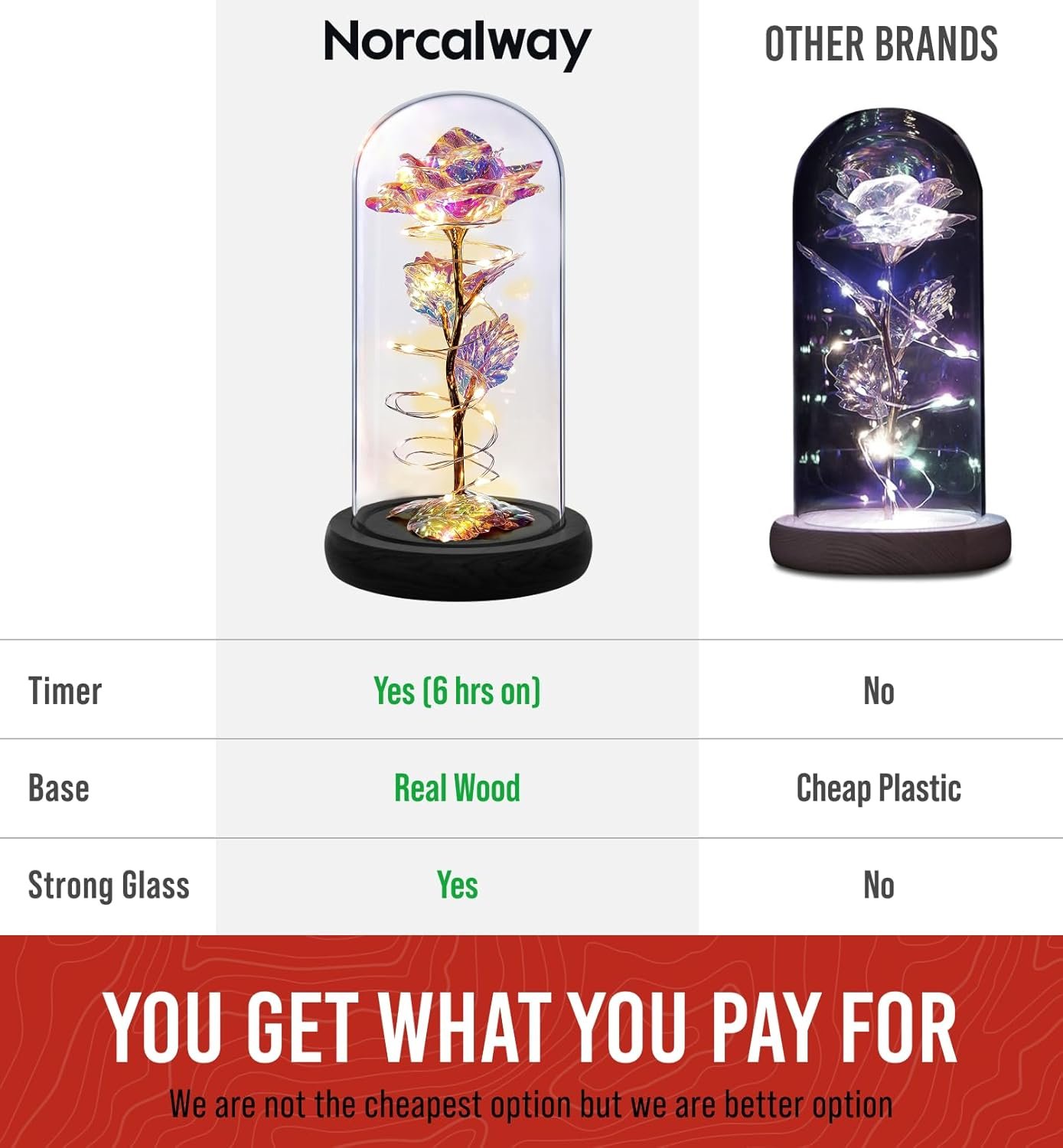 TIMER SAVES BATTERY: Only our rose dome comes with the convenient timer function. No need to turn it on or off manually, saving time and energy while preserving battery life.