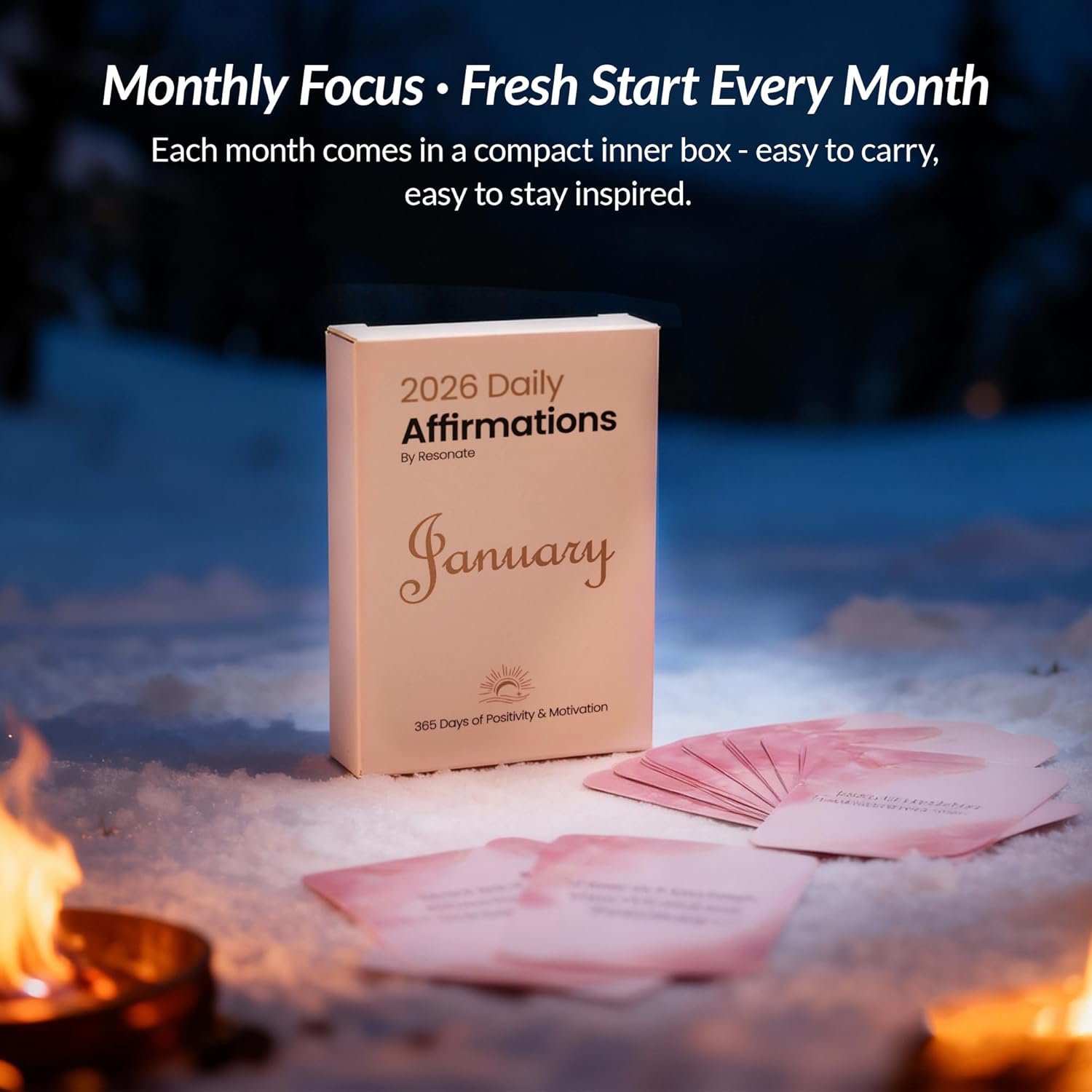 Organized by 12 Monthly Boxes: The positive affirmations cards complete set is divided into 12 elegant inner cases, one for each month, making it easy to stay consistent and experience a fresh start every month
