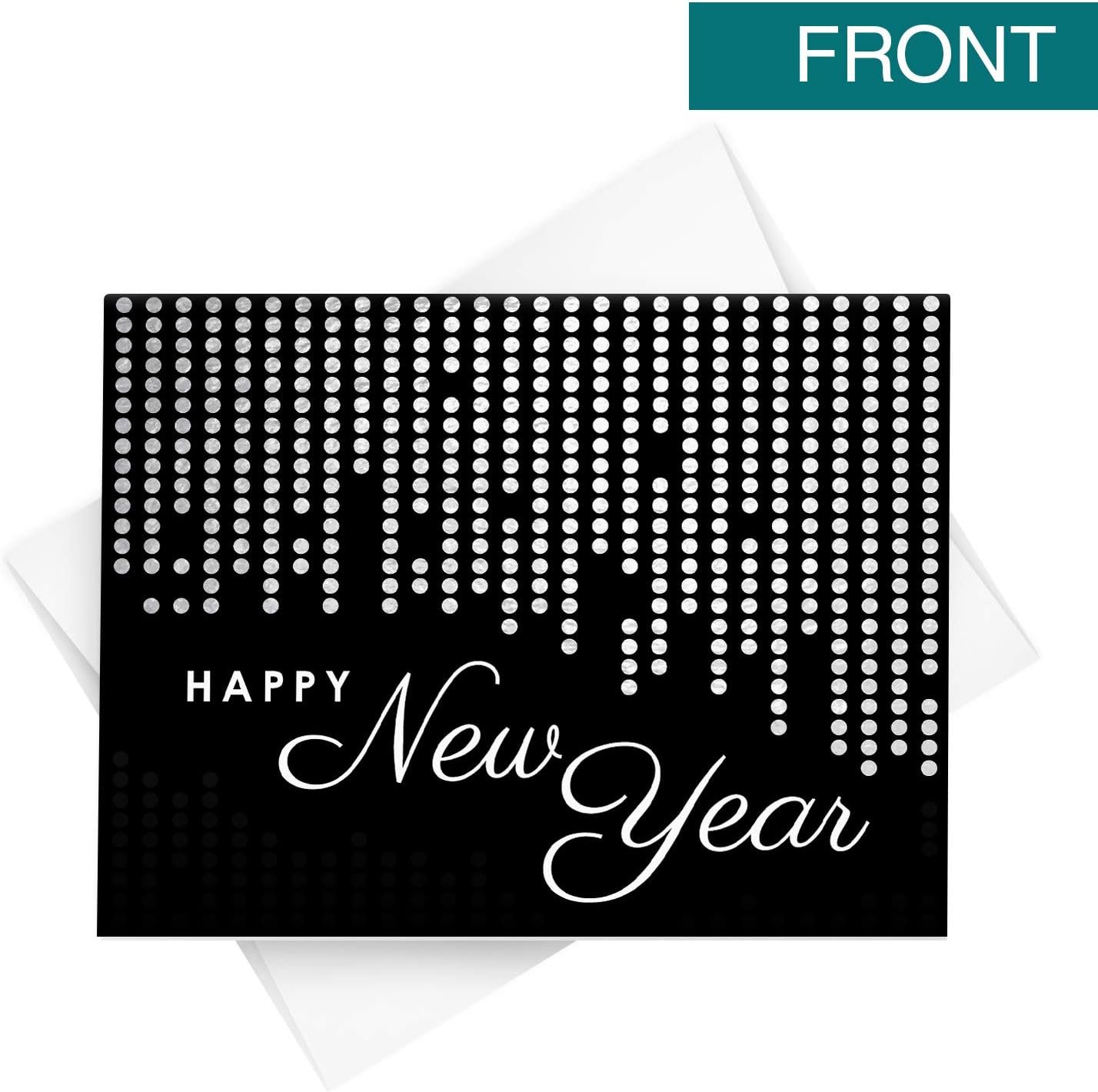 SIMPLE and STYLISH – Chic and modern silver disco dots design contrasting the classic beautiful cursive typography. Celebrate the New Year in style with this fun and festive card!