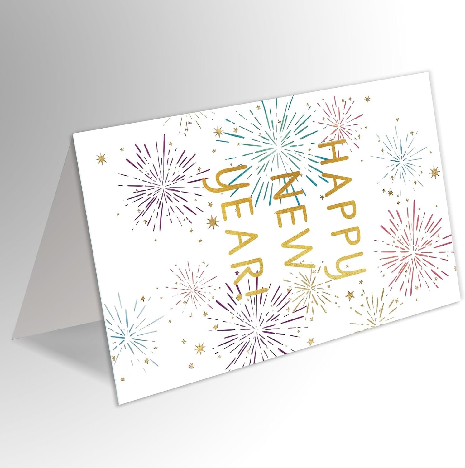 Happy New Year Cards: The card measures 8 x 5.3 inches and is printed on 350gsm eco-friendly recycled linen textured cardstock. Each card comes with a beautifully crafted envelope.