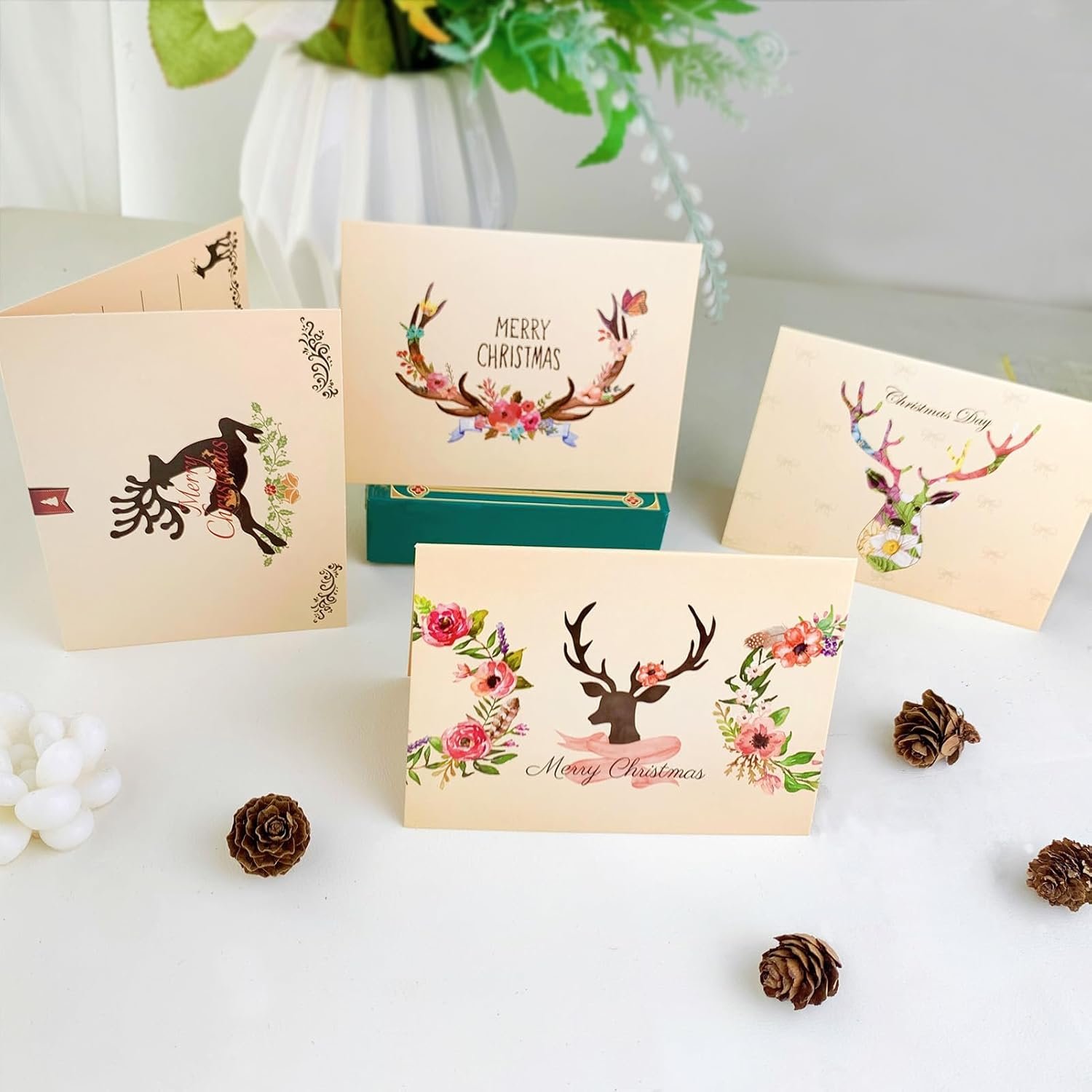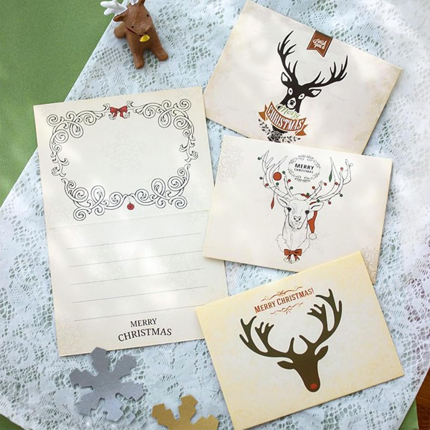What You Will Get : 8 Packs Of Christmas Reindeer Cards With Kraft Envelopes And Stickers There Are 8 Different Dimensional Elements On Them