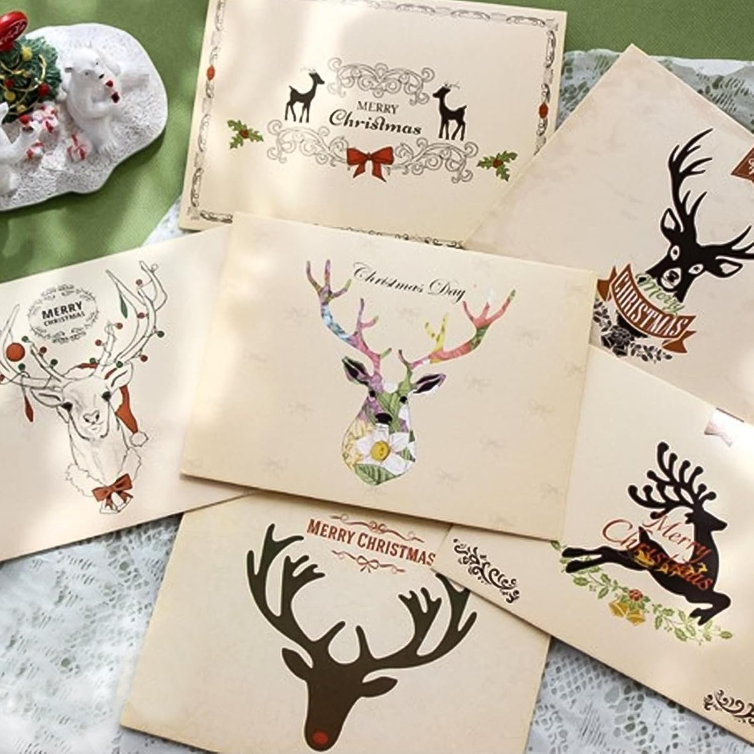 8 Pack Christmas Cards Christmas Reindeer Cards With Envelopes Reindeer Message Cards New Year’S Gifts Giving Cards 8 Designs 3.3 X 4.5 Inches