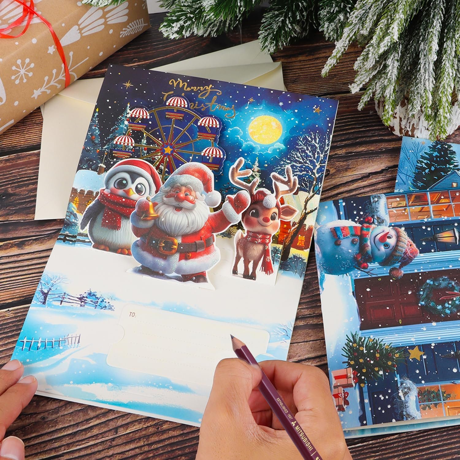 Durable Material: Christmas pop up cards with envelopes are made of premium quality composite paper. environmentally friendly material, unique Xmas design, 3D laser technology. Send warm wishes to your friends & families
