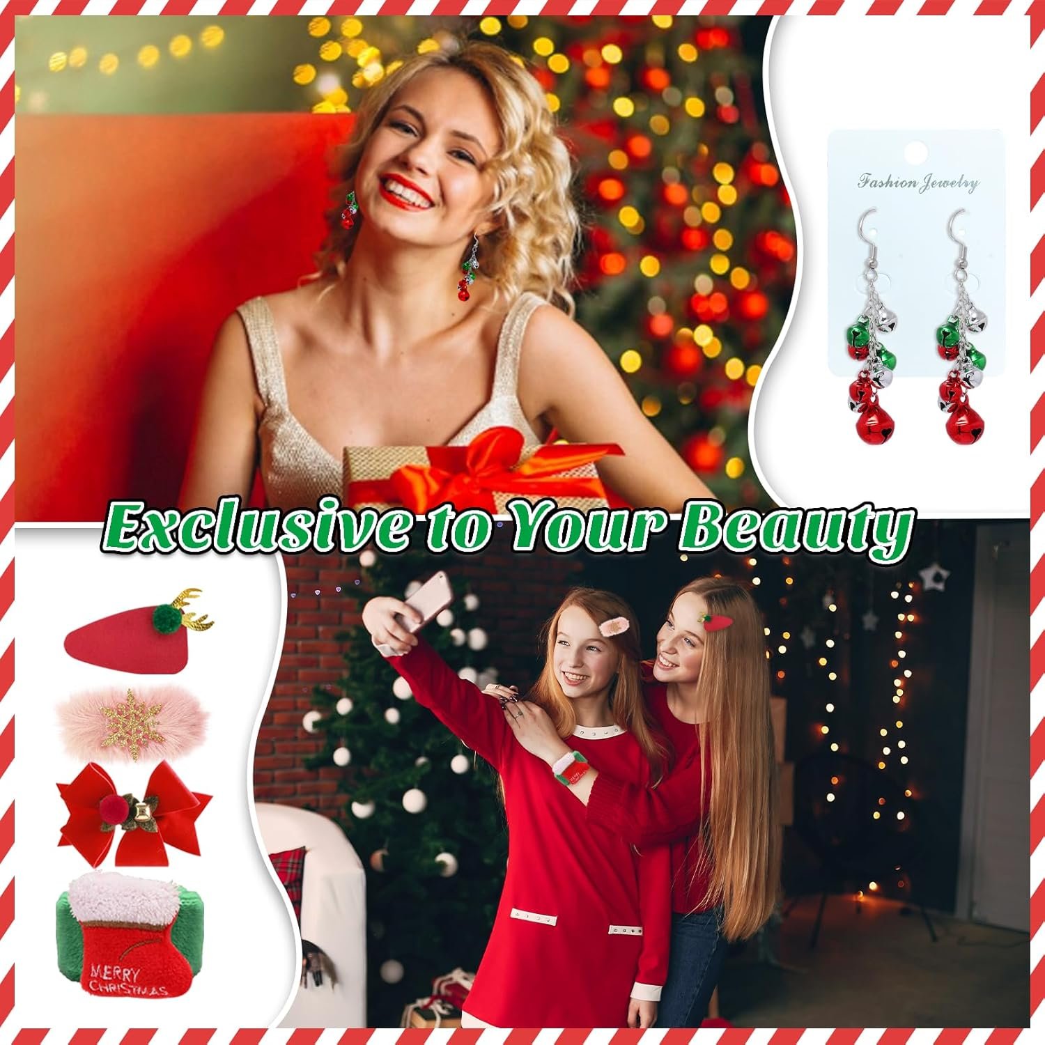 SPECIAL LOVE FOR SPECIAL PEOPLE: Christmas gifts for women contains a pair of plush Christmas socks, soft material can not only make her feel warm in the cold winter, but also as a holiday decoration. We also prepared hair clips in the shape of snowflakes, bows, socks and bell earrings, adding a thick festive atmosphere, whether it is daily wear or holiday parties, she can be the focus of attention.