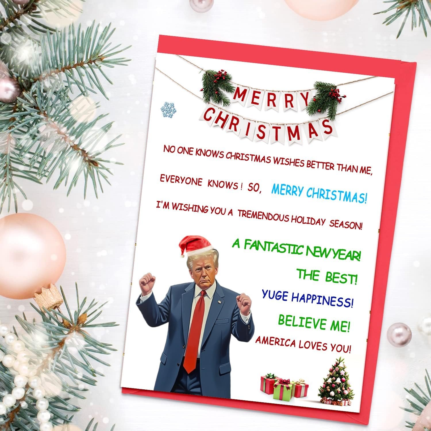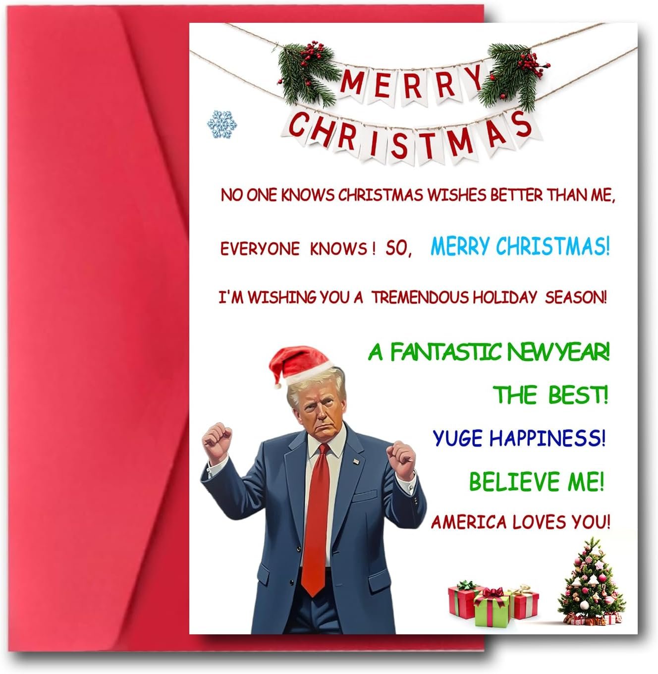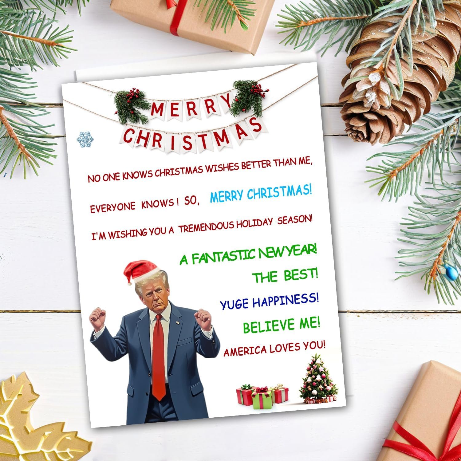 【Unique and Humor】if Tired of the monotonous Christmas greeting cards, give a fun presidential style greeting card. If he is also a supporter of MAGA, it will open up an interesting topic