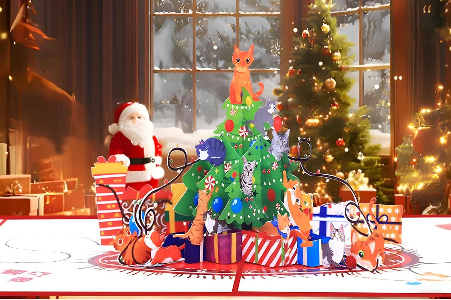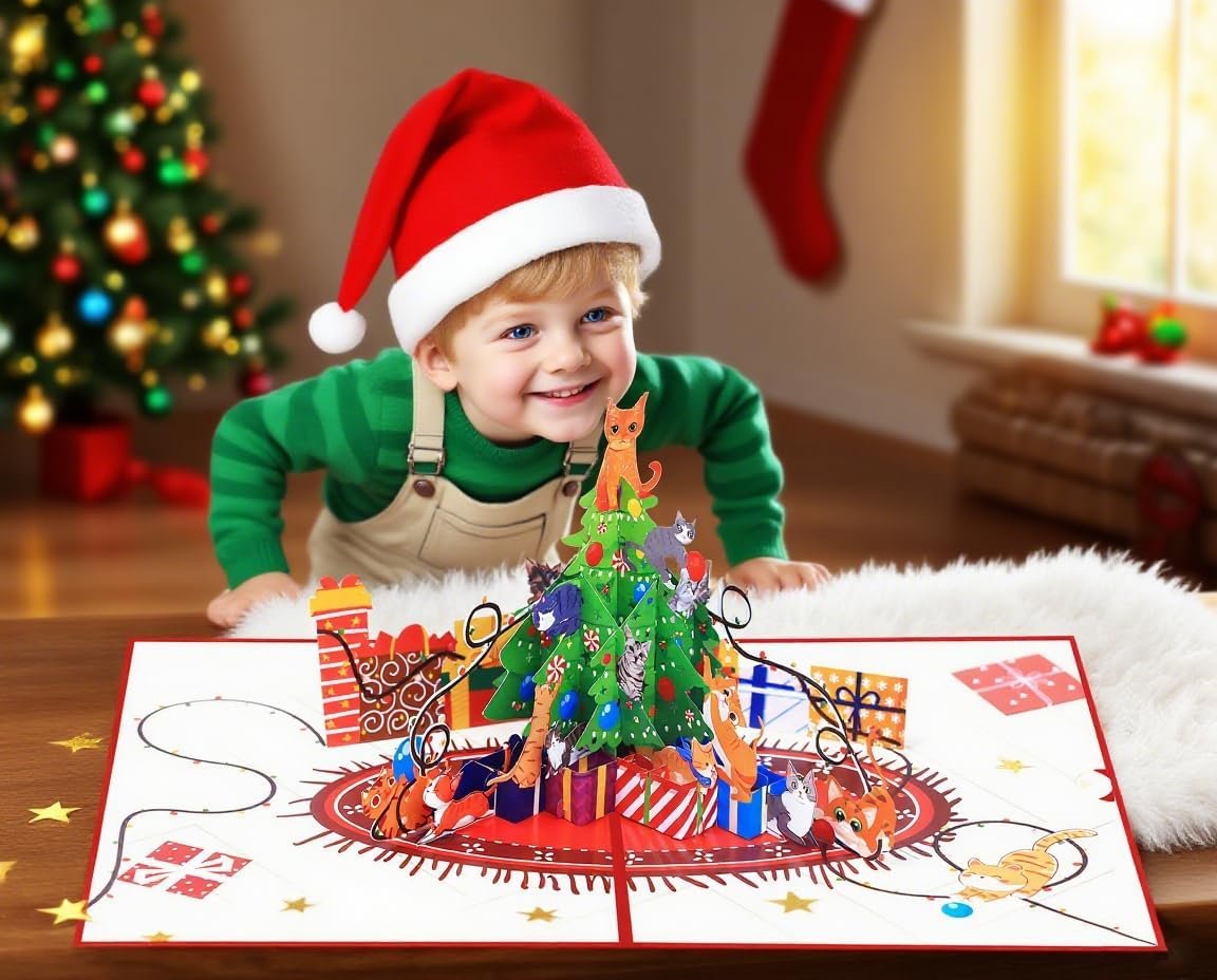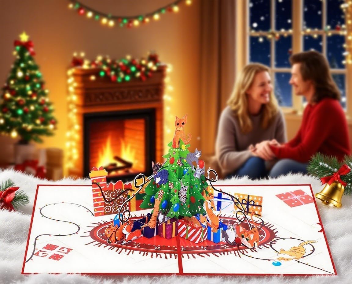 📝【Easy to Personalize & Mail】Folds flat for convenient storage/mailing. Includes a blank inner page for writing custom holiday messages, then pops up smoothly when opened.