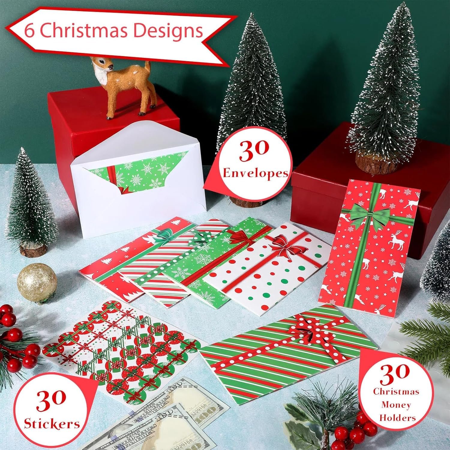 Christmas Money Holder with Envelopes: the christmas card set includes 30 christmas money card holder (6 adorable designs) and 30 matching envelopes, comes with stickers to secure safe for mailing, sufficient quantity to use and share