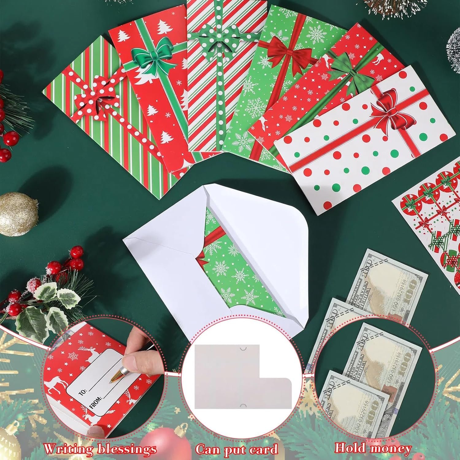 Exquisite Design: designed with classic red, green color as the main color, featuring christmas patterns like christmas trees, snowflakes, elk and bow prints; These christmas cash money holders are delicate and lovely, adding warm and festive ambience