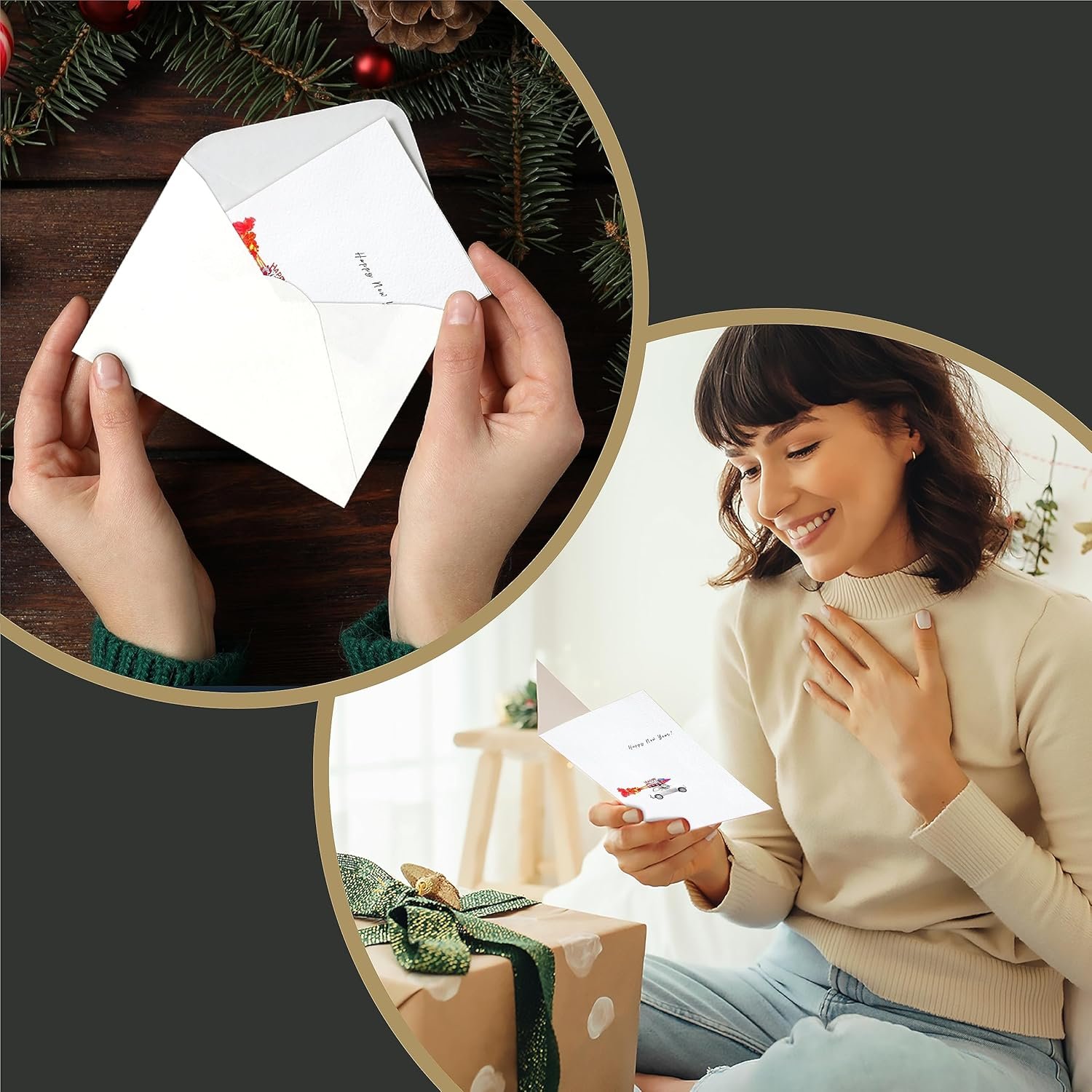 Perfect Card Size – Our notecards measure 6.75 x 4.5 inches, providing you with ample space to express your heartfelt sentiments. Whether you’re crafting sweet and humorous New Year greetings or messages of love, these cards are perfectly sized to accommodate your holiday sentiments.