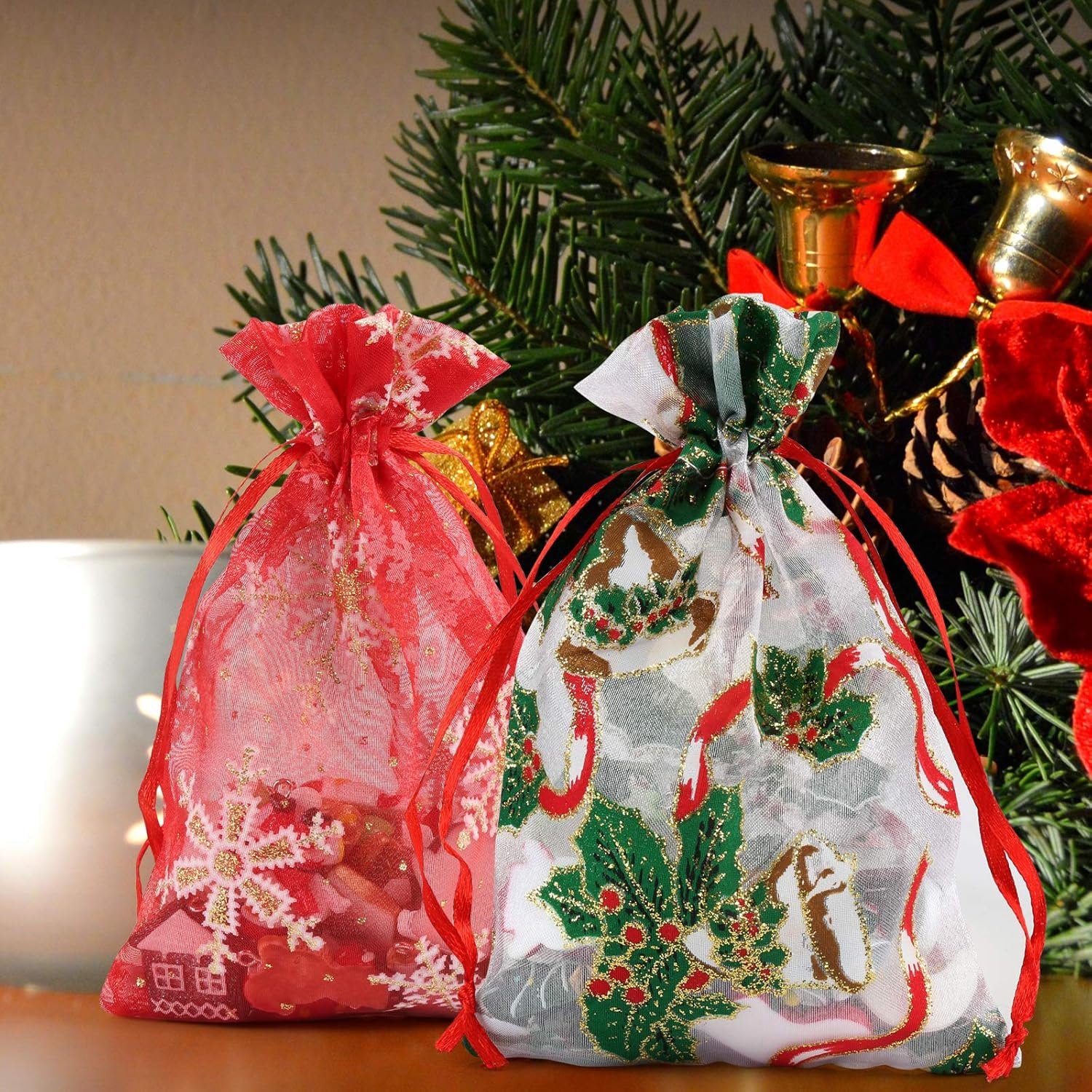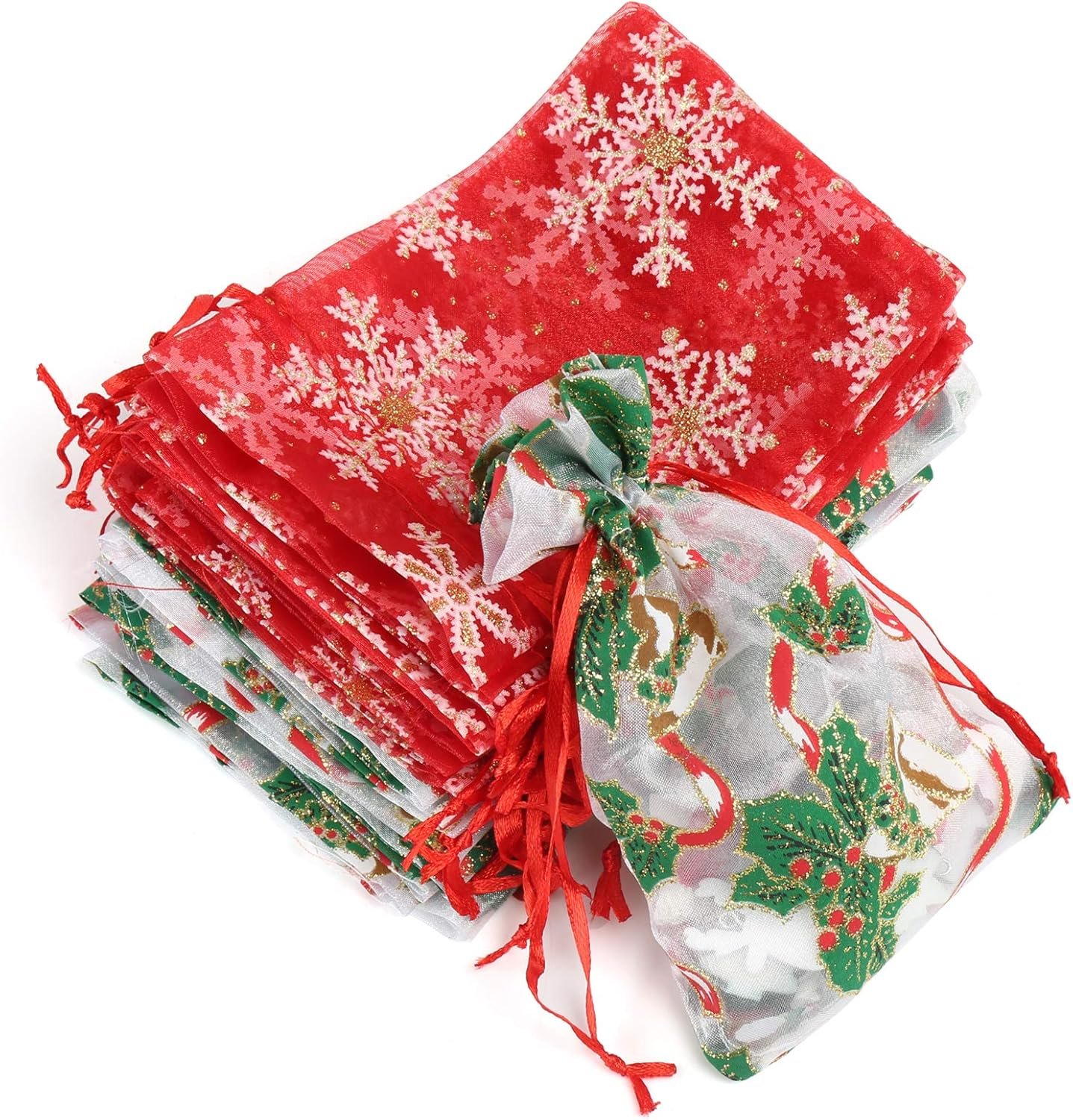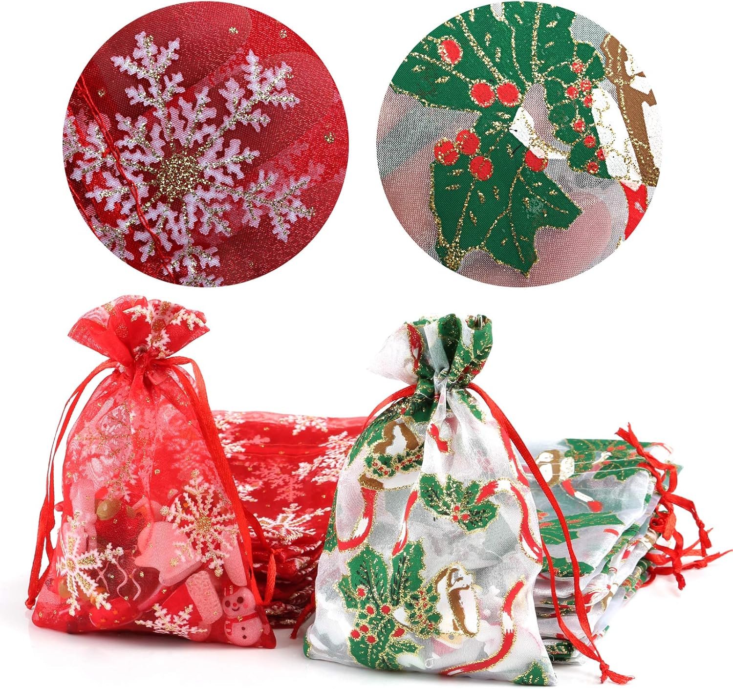 PREMIUM QUALITY: Made of high quality organza material, durable and reusable. The patterns on it are clear and colorful, suit for XMAS, NEW YEAR PARTY, etc.